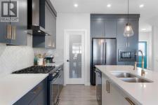 Welcome to this beautifully finished and thoughtfully upgraded Calbridge-built home backing onto a pathway and offering a blend of style, comfort, and functional living across all three levels. From the triple-pane windows to the fully developed sunshine basement, every detail has been selected to enhance everyday life. The main floor features a spacious front entry, 9 ft ceilings, fresh paint, a convenient 2pc bath, and an open-concept layout that is ideal for both family living and entertaining. The kitchen stands out with full-height dark grey/blue cabinetry, quartz countertops, herringbone tile backsplash, a large island, and KitchenAid dark stainless steel appliances including a gas range, and built-in microwave. The walk-in pantry provides exceptional storage with tons of shelving. The bright living room offers a gas fireplace with conduit to keep media wiring hidden and large windows that capture serene views of the backyard and pathway. The dining area comfortably fits a full-size table and leads to the back deck with BBQ gas line, stairs down to an exposed concrete patio, fresh mulch landscaping, storage under the deck, and a built-in cast iron firepit, perfect for relaxing or hosting. Upstairs, brand new carpet leads to a central bonus room with tray ceiling and pot lights. The primary suite feels like a retreat with vaulted ceilings, gimbal potlights, a feature wall, a large walk-in closet, and a 5pc ensuite including comfort-height double vanity with quartz counters, a soaker tub, and a tiled shower with niche. Two secondary bedrooms (one with a walk-in closet), a full 4pc bathroom with quartz countertops, and an upper laundry room with folding shelf complete this level. The fully finished sunshine basement is warm and inviting thanks to double-insulated walls and a dual-zone furnace, and includes a spacious recreation room, large bedroom with walk-in closet, 4pc bath with quartz counters, storage space, sump pump, and rough-in for radon. The double att ached garage is plumbed and ready for utility use, making it ideal for future workshop needs. This is a move-in ready home where thoughtful upgrades, practical design, and location come together, set in a quiet, family-friendly area with direct pathway access right out your back door. (id:6769)