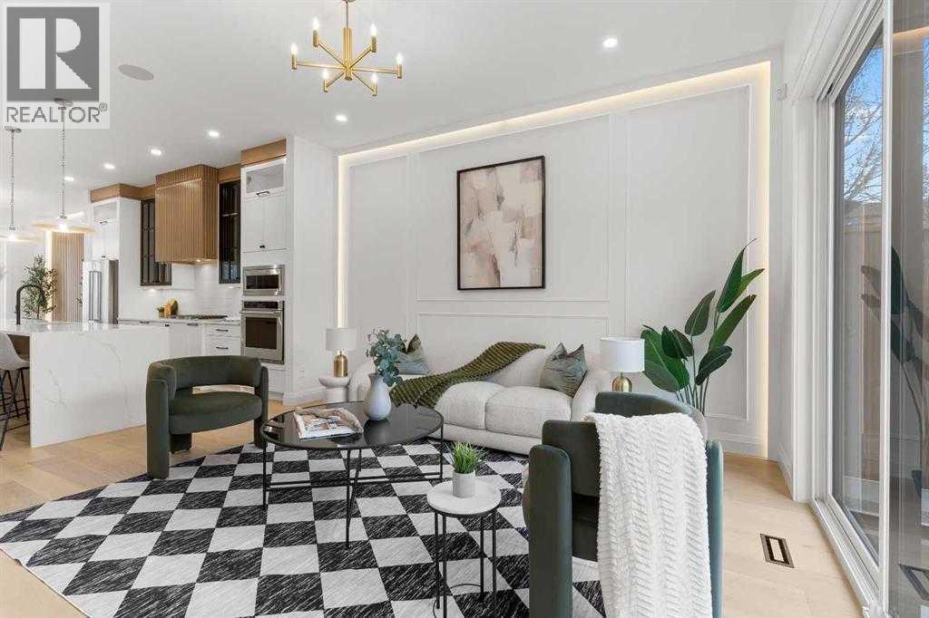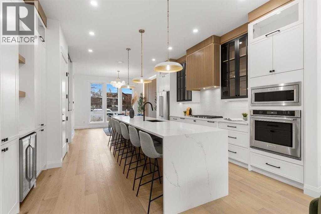 Welcome to this brand new luxury semi-detached home with a 2-bedroom legal suite in the sought-after community of Banff Trail. Perfectly located just steps from the Banff Trail LRT station, this home offers quick and easy access to downtown Calgary, shopping, dining, and recreation. The University of Calgary is only minutes away, making it an excellent choice for families, professionals, students, or investors seeking premium quality and unbeatable convenience.Step inside to discover an elegant main floor featuring 10-foot ceilings and hardwood flooring that extends throughout both the main and upper levels. The open-concept layout is designed for modern living, with a chef-inspired kitchen showcasing a large central island, quartz countertops, ceiling-height cabinetry, and a KitchenAid appliance package. The walk-in pantry with custom MDF shelving provides ample storage, while the spacious dining and living areas create the perfect setting for entertaining. A modern fireplace anchors the living room, and behind it you’ll find a mudroom and a two-piece bathroom for added convenience. A glass-walled office on the main floor offers a stylish and functional workspace for today’s professionals.Upstairs, you’ll find three generous bedrooms, each designed with comfort and style in mind. The primary suite boasts a custom walk-in closet and a luxurious 5-piece ensuite complete with in-floor heating. Attention to detail is evident throughout with 8-foot doors, solid maple handrails, black metal spindles, and custom MDF built-ins in every closet and shelving unit.The fully finished basement offers a separate entrance to a beautifully designed 2-bedroom legal suite, perfect for extended family or as a mortgage helper. This suite features durable LVP flooring, a full kitchen, and in-suite laundry, providing complete independence and functionality for tenants or guests.Outside, the home impresses with black exterior windows, a James Hardie board and brick exterior, and full professional landscaping including fencing, gravel, a tree, grass, and a rear deck with railings—ideal for summer gatherings. The double detached garage with oversized doors provides secure parking and extra storage. Additional upgrades include rough-ins for a security camera system, alarm, and central vacuum, ensuring both convenience and peace of mind.Combining modern architecture, exceptional craftsmanship, and a prime inner-city location, this Banff Trail residence offers the perfect balance of luxury, practicality, and investment potential. Don’t miss your chance to own this stunning property. (id:6769)