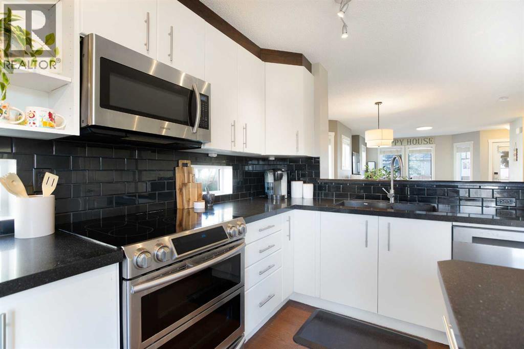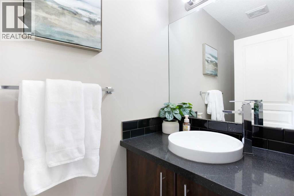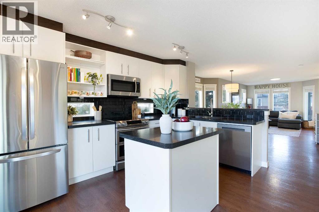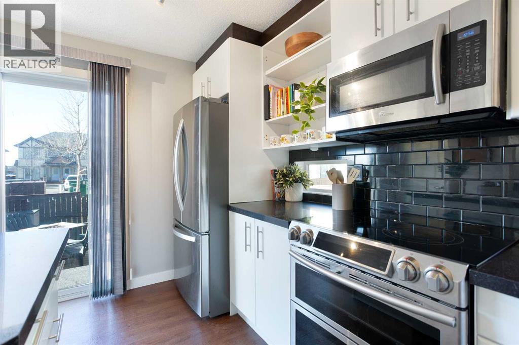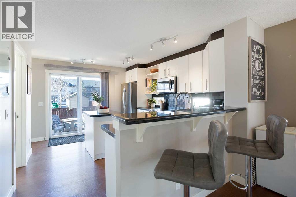 Prepare to be captivated by this extraordinary End Unit townhome within the Zen complex, in the highly sought-after Kings Heights community! With a highly functional layout offering sophisticated style, this home spans over 1,900 total square feet across three meticulously finished levels, perfectly designed for modern living. Stepping inside, the main floor immediately welcomes you into a bright, open-concept sanctuary. This thoughtfully designed layout is bathed in natural light, anchored by beautiful warm laminate flooring and finished in soothing, designer-selected neutral tones. The living area is instantly inviting, featuring a cozy gas fireplace before flowing effortlessly into the generous dining space—an ideal setting for both entertaining and daily enjoyment. Adjacent to this is the gourmet kitchen, a chef's delight showcasing luxurious granite countertops with an elegant tile backsplash, an island with extra storage, convenient breakfast bar, plus a large pantry. Completing this level is a chic two-piece guest powder room. Ascending to the upper floor, you discover the ultimate in privacy: the highly sought-after dual primary suite configuration. Both oversized bedrooms serve as tranquil retreats, each thoughtfully paired with its own private, full ensuite bathroom. The fully developed lower level offers yet more versatile space, finished with plush carpeting. This basement oasis includes a sizeable recreation room, a third sizable bedroom, and a four-piece bathroom. Outside, enjoy the priceless benefit of a private, fenced, west-facing backyard—a sun-drenched haven that’s perfect for pets and outdoor relaxation. Adding to the convenience, this premium property includes an incredible three dedicated titled parking stalls (two reserved stalls right out front and one nearby stall! Location truly sets this home apart, as you are just minutes from King's Market shopping center, the retail haven Cross Iron Mills, top-rated schools, and enjoy lightning-fast acc ess to Deerfoot Trail. This isn't just a home; it's a lifestyle upgrade. Don't miss the chance to own this premium property—schedule your exclusive viewing today! (id:6769)
