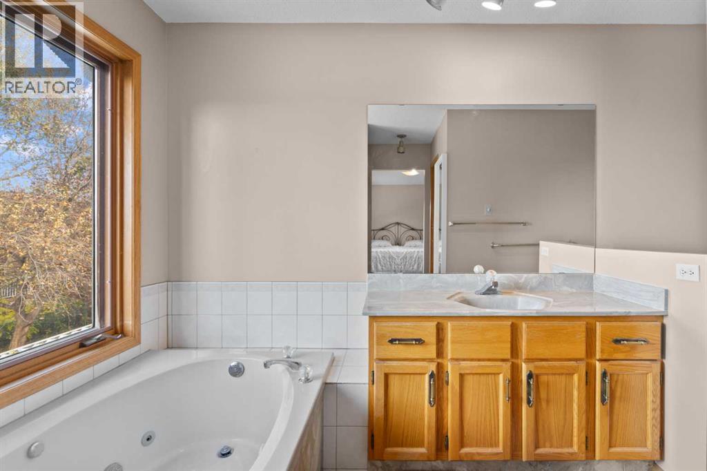 ***Open House Sunday November 9th 2:00-4:00*** Welcome to this beautifully kept 4-bedroom family home tucked away in one of NW Calgary’s most sought-after estate neighbourhoods, the Hamptons! This place has the perfect mix of comfort, space, and convenience, it is ideal for families who love a great community vibe.As you walk in, you’ll notice the high vaulted ceilings and the eye-catching, updated staircase that really sets the tone for what this home has to offer. You start with a bright formal living room, where stylish plantation shutters add a touch of elegance. Right next door, the formal dining area is adorned with a lovely bay flanking window and tons of natural light. Vinyl plank flows through the entire main level, bringing a sense of style and ease of care that everyone can appreciate.The kitchen features two-tone cabinets, durable wrapped arborite counters, a black granite sink, and a sleek black appliance package. There's also a small workstation for holding your paperwork and laptop. The kitchen also includes a casual eating nook that leads to a cozy, sunken family room. The family room has a wood-burning fireplace with gas assist and is flanked with built-in bookshelves. Finally, just outside the eating nook you have access to the covered deck and the west facing backyard. This main living area is a perfect spot to relax with the family or entertain your guests, whether it is a BBQ in the summer or a cool winter day.The main level also includes a handy 2-piece powder room, laundry area, and a private office with its own unique shower — great for guests or even your a place to clean up your pets!The updated winding staircase takes you upstairs where you will find the spacious west facing primary bedroom. The attached primary suite includes a walk-in closet, separate shower and a large-jetted tub. here are also two additional good sized bedrooms and a bathroom, so this makes for a great home for your growing family. The fully finished base ment adds even more living space, with a big rec area, a family room, a fourth bedroom (non-egress window), and plenty of storage.Outside, the sunny west-facing backyard is perfect for kids, pets, or weekend barbecues — lots of space to play and unwind.Quick access to Stoney Trail means you are only minutes from access to the highway out to the mountains, Cross Iron Mills or the airport. Located just steps from parks, tennis courts, walking paths, and close to schools, shopping, and amenities, this home really has it all. (id:6769)