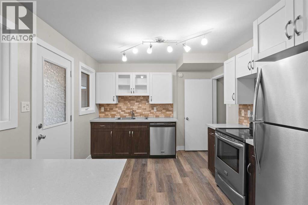 Welcome to Killarney Glen Court, an ideally located inner-city townhome community surrounded by mature trees and park-like green spaces. This updated three-level townhouse combines modern comfort with an effortless layout that feels bright, open, and connected. The main level features a spacious living room with a cozy gas fireplace, large picture window, and durable vinyl plank flooring that flows seamlessly into the dining area and renovated kitchen. The kitchen impresses with two-tone cabinetry, stainless steel appliances, a textured brick backsplash, and ample counter space for cooking and entertaining. Upstairs, you’ll find two generous bedrooms, including a king-sized primary with double closets, and a refreshed 4-piece bath with full tile tub surround and updated fixtures. The fully developed basement adds valuable flexibility with a large recreation room, guest bedroom or office, and a stylish 3-piece bathroom with fully-tiled shower — perfect for movie nights, hobbies, or visiting guests. Outside, your assigned parking spot is conveniently located just outside the back door. The well-managed complex offers excellent value with a low condo fee that covers snow removal, landscaping, and professional management. Set in one of Calgary’s most desirable neighbourhoods, you’re minutes to Marda Loop, 17th Ave, downtown, and the LRT, with easy access to schools, playgrounds, and bike paths. A fantastic opportunity for first-time buyers, investors, or anyone seeking the best of inner-city living in a quiet, established community. (id:6769)