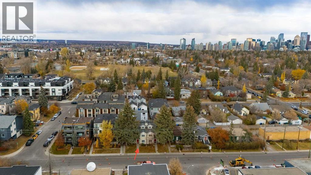 OPEN HOUSE THIS SAT NOV 8TH/ SUN NOV 9TH 1-4PM. Welcome to the heart of South Calgary! This bright and inviting townhome offers over 1600 sq. ft. of comfortable living just steps from Marda Loop’s cafés, parks, and local shops. The main floor features a welcoming open layout, A vibrant kitchen with quartz counter tops - hardwood floors and a cozy three-sided gas fireplace — perfect for relaxing or entertaining. Upstairs you’ll find two spacious bedrooms, a full bath, and a versatile loft with faulted ceilings and large dormer windows on each end. Ideal as an office, gym, studio, or guest retreat. A small private courtyard provides space for the family dog, a BBQ or a quiet spot to unwind, with convenient access to the single detached garage. Part of a self-managed four-unit complex, this home blends everyday comfort with inner-city convenience — just 10 minutes from downtown Calgary - Walking distance to public library, South Calgary pool and River park off-leash dog park. (id:6769)