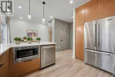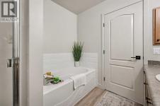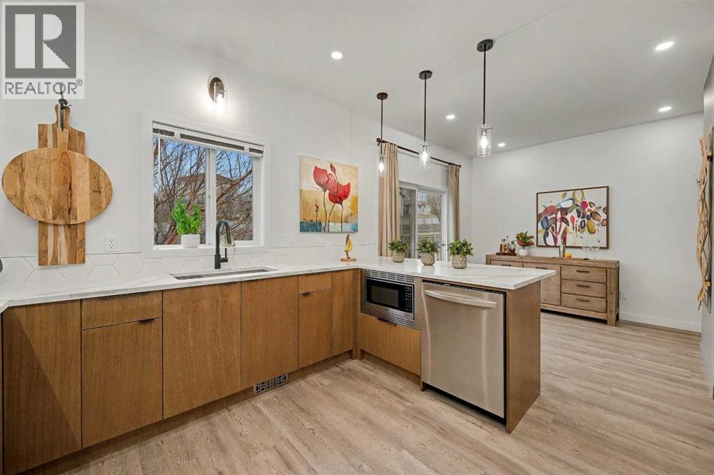 Welcome to The Fairways Vistas, your new home! This recently renovated executive-style townhome offers spacious living paired with stylish comfort and smart design. As you walk in, a mid-century partition opens up to a bright main living area featuring a large bay window that fills the room with natural light and courtyard views. The corner gas fireplace adds warmth and atmosphere, especially during those fall evenings. Next to the living room, a dropped ceiling defines the open dining area, which can also serve as a perfect spot for a home office. Past the main floor powder room is a modern kitchen outfitted with stainless steel appliances, quartz countertops, and elegant oak cabinetry. The practical layout includes generous counter space, a pantry near the range, and an oversized sink with a garburator, making meal prep easy. Hosting is simple with a sizable peninsula that features a built-in microwave, eating bar, and wine fridge. The adjacent breakfast nook is designed for gatherings and gives access to a large rear deck, complete with a gas hookup for barbequing and mature trees for privacy and shade. Upstairs are two large master suites. The primary suite has a walk-through closet leading to a roomy bathroom with a soaker tub, separate shower, and a wide vanity perfect for two sinks if desired. An adjoining flexible space works well as a reading nook, yoga area, or nursery. The second suite overlooks the SE facing courtyard and comes with a walk-through closet with custom wood shelving and upgraded organizers, plus its own full bathroom! The lower level provides a versatile ground-level area accessible from the double garage—ideal for a gym, hobby room, home office or extra storage. It's prepped for a future bathroom if you want to convert it into a lower-level laundry, wine making or mudroom. This home offers more space than most brand new builds and features larger and more private grounds. Premium upgrades including luxury vinyl plank flooring throughout, fresh paint, and updated lighting. Recent updates feature a fiberglass front door, insulated garage door with tinted windows, resurfaced deck and entryway, composite steps with aluminum railing, and improved roofing and gutters. Residents enjoy modern amenities in a mature community, close to golf courses, walking paths, the airport, major traffic routes, and all kinds of shopping. Schedule a visit to discover the comfort and lifestyle this outstanding residence has to offer. (id:6769)