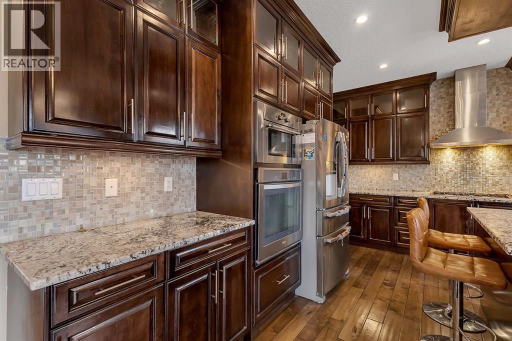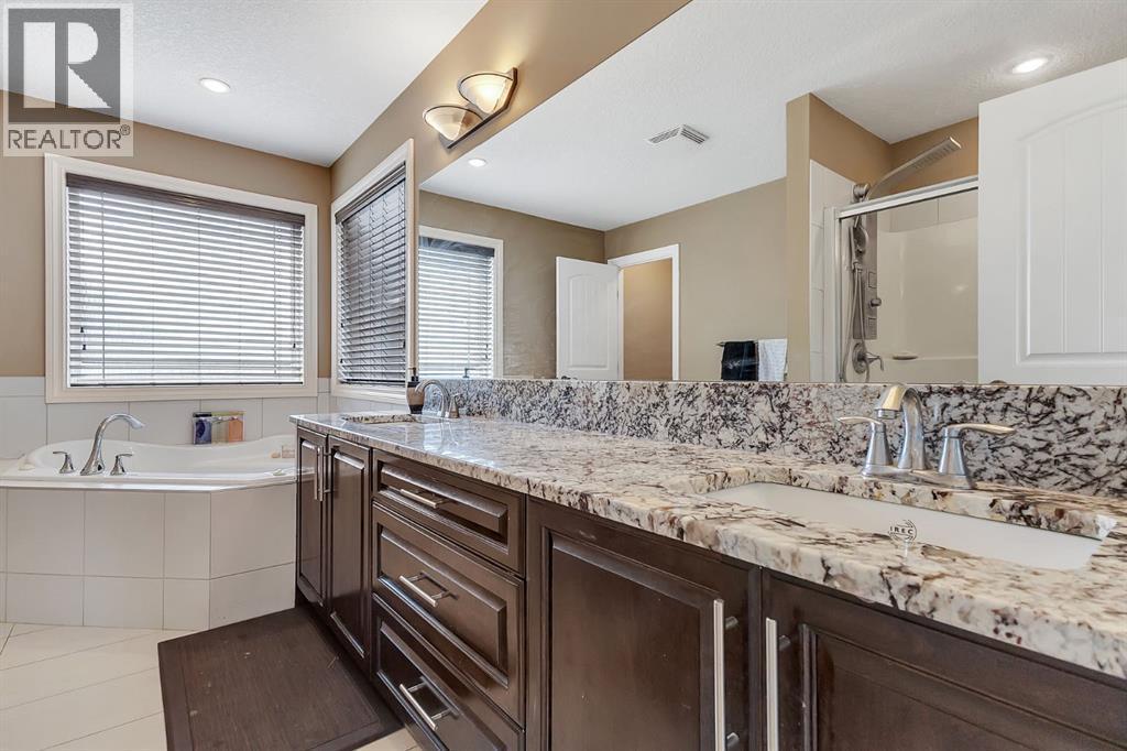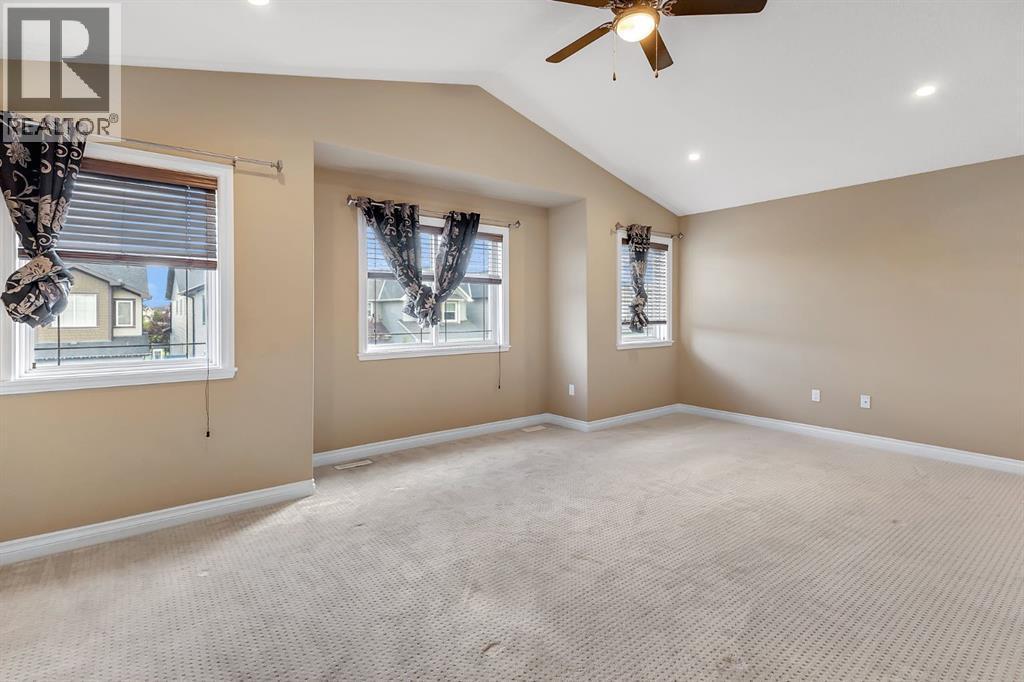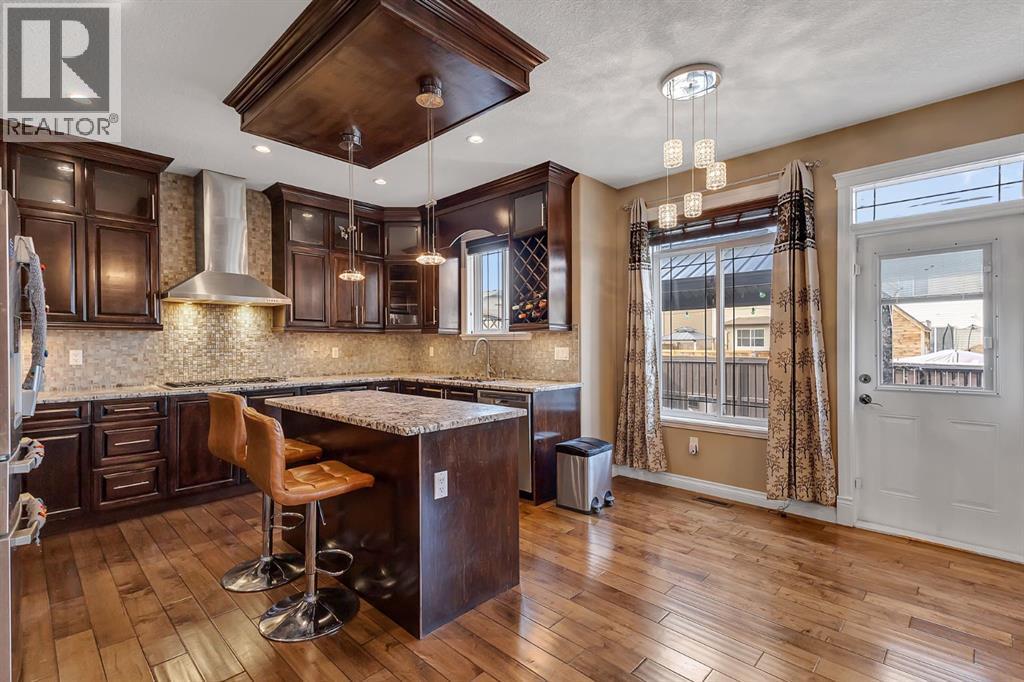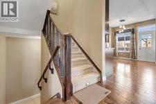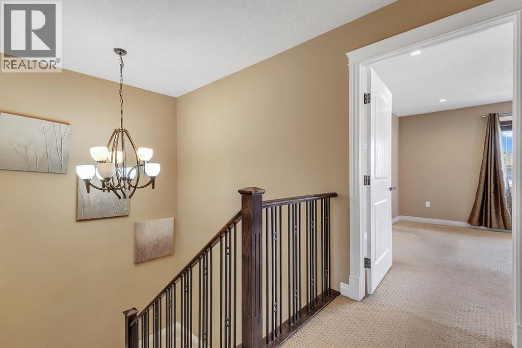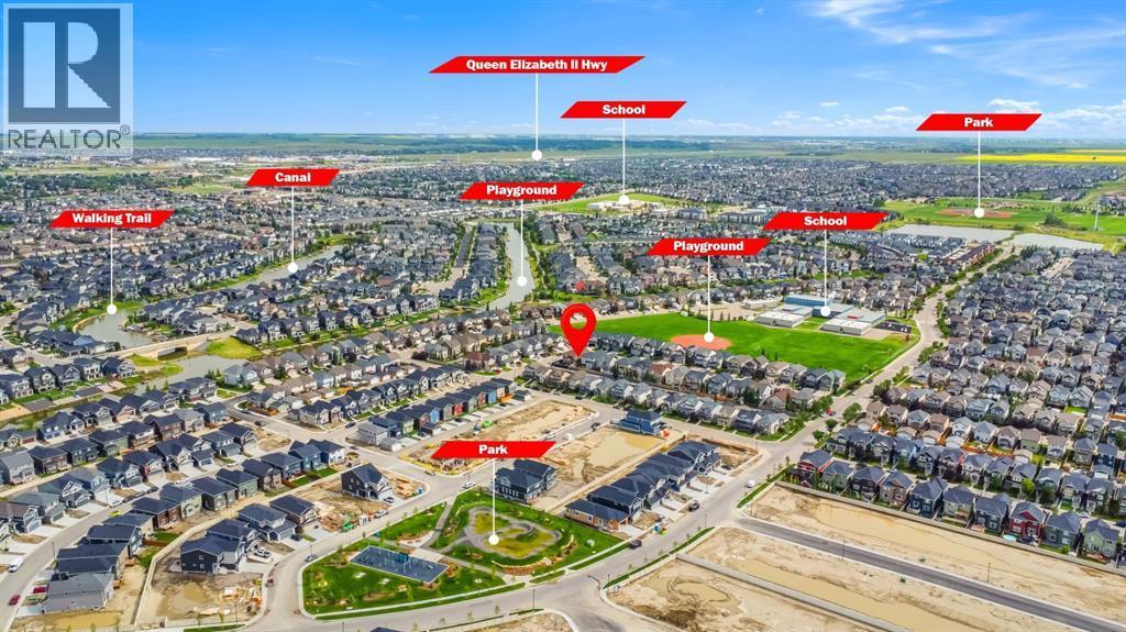 Corner Lot | Approx 2500 SQFT | Mainfloor Bedroom | Custom Woodwork | 2 Ensuites. Stunning 2,500 sq. ft. Fully Upgraded Two-Storey in Bayside. Discover this beautifully designed two-storey home in the sought-after Baywater community, ideally located on a spacious corner lot with a rear paved lane—just steps from Nose Creek Elementary School, parks, and the scenic Canal pathway. This custom-built layout offers a bright family room with a cozy fireplace and built-in cabinetry, a chef’s kitchen with ceiling-height cabinetry and a walk-through pantry, and a formal dining room—perfect for entertaining. A versatile main-floor den can serve as a home office or optional fourth bedroom. Upstairs, you’ll find three generously sized bedrooms and three full bathrooms. The luxurious primary suite boasts a spa-inspired 5-piece ensuite. The second bedroom features its own 4-piece ensuite, while the third bedroom enjoys convenient access to the main 4-piece bath. A spacious bonus room and an upper-level laundry add practicality and comfort. This home showcases exceptional finishes, including hand-scraped hardwood, designer tile, custom railings, in-stair lighting, 8' doors with oversized headers, and 9' ceilings on both the main and lower levels. The exterior is equally impressive with upgraded siding, a rear deck, and an insulated 21' x 23' garage. A perfect family-friendly location where kids can easily walk to school and nearby parks. (id:6769)