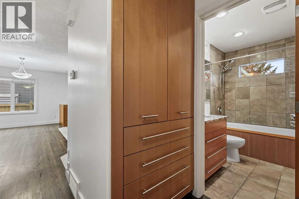 Nestled on a sunny, tree-lined corner lot in the heart of Wildwood, this beautifully updated bungalow blends timeless character with thoughtful modern touches. From the moment you step into the welcoming foyer, the attention to detail and quality craftsmanship are unmistakable. Investor Alert - Zoned H-Go. This home is perfect for a turn key home, buy and hold or redevelopment. The possibilities are endless. The open main living area is bright and inviting, featuring rich hardwood floors and large windows that fill the space with natural light. The kitchen offers both style and functionality, showcasing custom full-height cabinetry, granite countertops, and a spacious island — perfect for casual dining or entertaining. Additional thoughtful details such as built-in storage and soft-close cabinetry.The primary suite provides a comfortable retreat, complete with custom closets and warm, relaxing tones. Downstairs, the fully developed basement extends the living space with a large family area and an impressive wet bar with dual wine racks and display shelving — an ideal spot to unwind or host friends. The exterior has also been updated with attractive stucco and stone detailing. Outside, a generous yard and spacious deck provide the perfect setting for summer barbecues, family gatherings, or simply relaxing while the kids enjoy playing. There is also a large 22"x11" covered parking pad perfect for additional parking. Don’t miss this opportunity to own a classic Wildwood bungalow that perfectly balances comfort, quality, and charm. (id:6769)