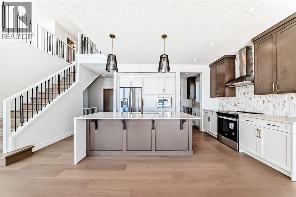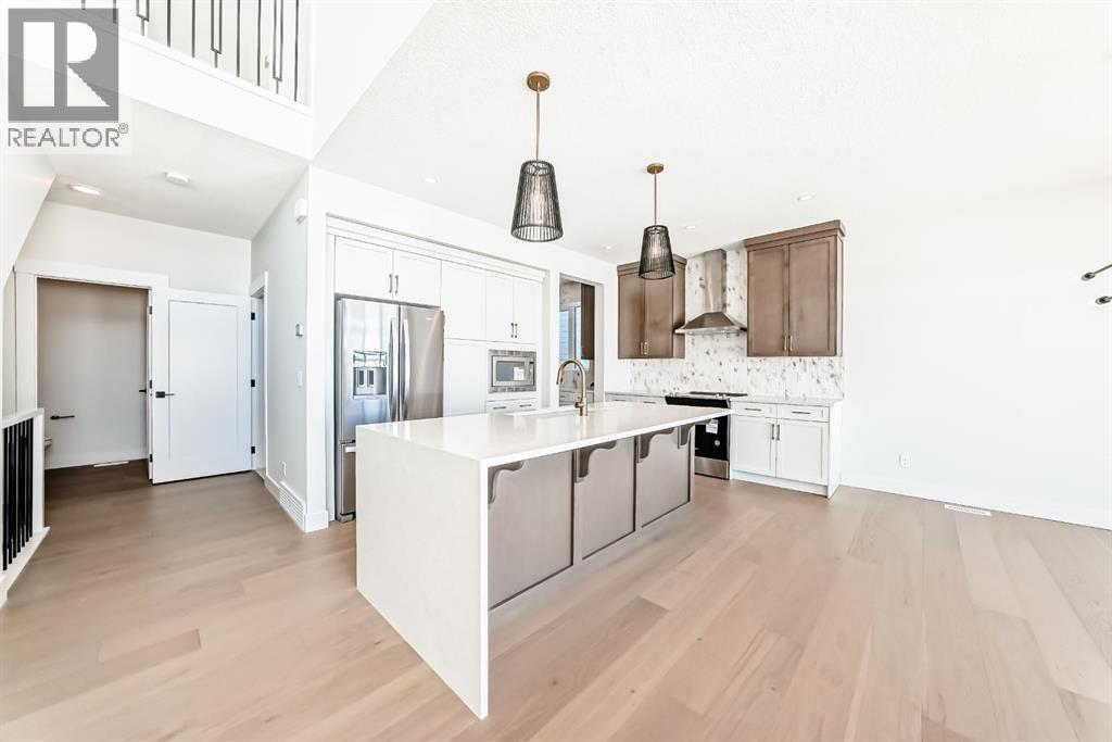 Introducing ECO-PATH by Morrison Homes, your trusted custom home builder is at the forefront of eco-friendly NET ZERO home construction. This ESTATE home is built with high performance insulation, energy efficient windows and advanced HVAC systems to minimize energy consumption. Solar panels and Energy Star appliances further reduce the carbon footprint, while low flow fixtures conserve water. Morrison Homes also prioritizes the use of sustainable, non-toxic building materials, such as recycled wood and low VOC paints, ensuring a healthier indoor environment. Incorporating Smart Home Technology, this home optimizes energy use, providing both comfort and environmental stewardship. * Efficient Electric Heat Pump for Heating & Cooling * 36 Solar Panels to Generate Electricity * R60 Attic Insulation to Reduce Energy Loss * Air Barrier to Improve Homes Energy Retention * Triple Pane Argon Filled Windows with Sunstop Coating * 80 Gallon Heat Pump Hot Water Tank * Heat Recovery Ventilator to Minimize Heat Loss * XPS Rigid Insulation Beneath Basement Foundation * Enjoy the award winning Ellsworth model featuring over 2700 square feet of perfectly planned living space. Enter the home to a sun filled, main floor den which is open to a gorgeous living space with floor to ceiling windows and a soaring 18' open to above. More natural light to be enjoyed with 3 panel sliding door to the South backyard and deck. The kitchen is a warm and inviting space with crafted cabinets, waterfall stone counter on the island and rich Champagne Bronze hardware. Flow through to the servery/beverage centre to the spacious pantry. The large mudroom with closet is a space where everyone can easily walk in from the Triple attached garage. Upstairs features beautiful open loft to soak up all the natural sunlight, a large laundry room with storage cabinets and 2 folding counters, 2 great sized bedrooms...one with a vaulted ceiling and one with a walk in closet. The primary bedroom is perfectly sized a nd comes fitted with a custom tiled shower, stand alone tub, 2 separate vanities and a sizeable walk in closet. The basement is a blank slate for future development. Live in and create your Legacy! Built on a premium lot, walk to the Pine Creek Ridge, minutes away from shopping, schools, parks and playgrounds - this community has it all. (id:6769)