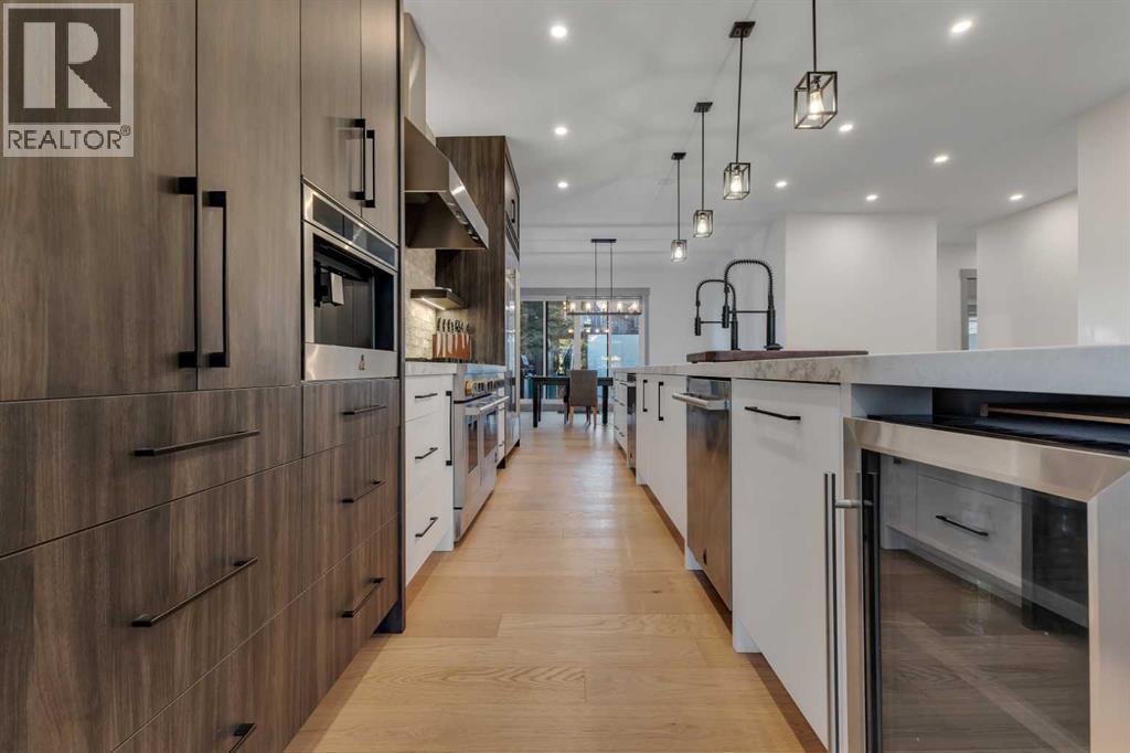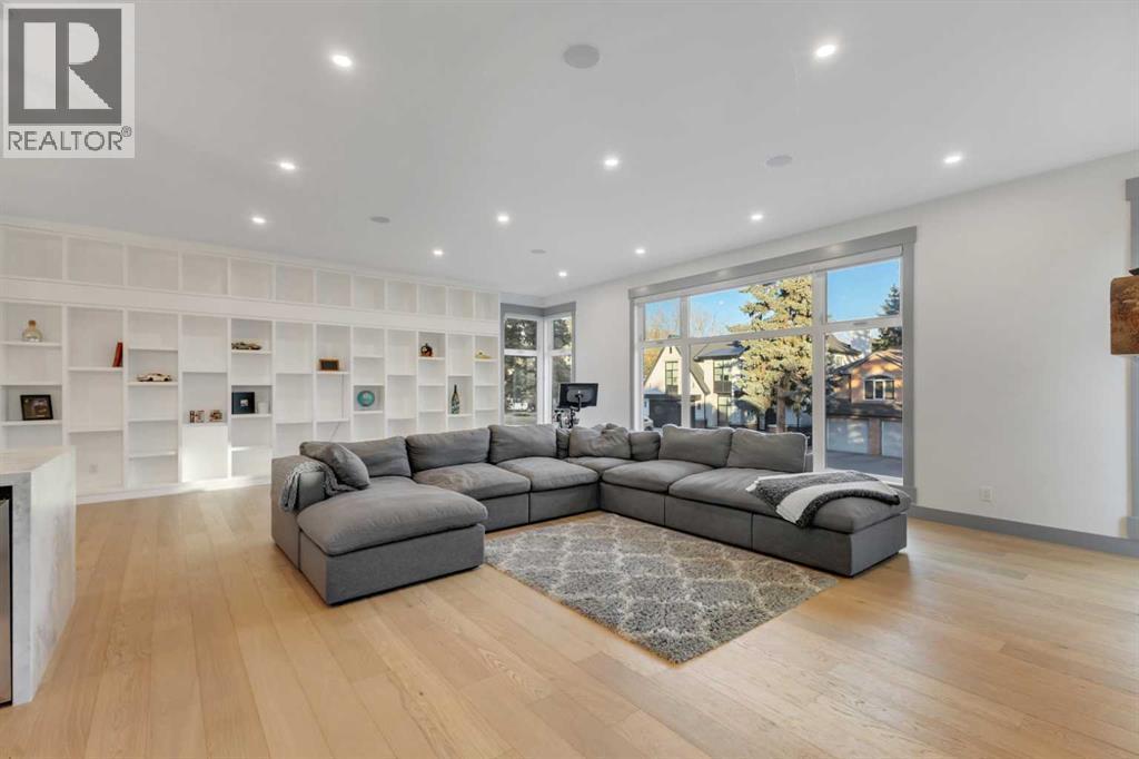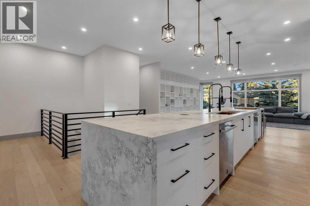 Welcome to your dream home in the heart of Rosemont, a stunning front drive-under bungalow located directly across from Confederation Park. This newly built, custom-designed residence combines modern luxury, thoughtful craftsmanship, and the best of Calgary’s inner-city lifestyle. Enjoy breathtaking park views from your front windows, stroll across the street to the walking paths, or relax in your own private backyard retreat featuring a sports court for pickleball or basketball and professional landscaping. With parkland in front and recreation in back, this home offers an unmatched blend of serenity, space, and sophistication.Step inside and you’ll immediately feel the quality. The grand foyer opens to a bright, open floor plan with 10-foot ceilings, expansive windows, and rich hardwood floors flowing throughout. Natural light fills every space, creating an airy and inviting atmosphere. The spacious living room is a statement of design, complete with a custom library wall and incredible park views, perfect for both relaxation and entertaining.At the heart of the home is the chef-inspired kitchen, showcasing a spectacular 18-foot island, JennAir appliances, a massive walk-in butler’s pantry, duel kitchen sink faucets and a handcrafted stone backsplash that adds warmth and character. Whether you’re preparing family meals or hosting friends, this kitchen is designed to impress. The dining area opens through large glass doors to a sun-filled deck, the perfect spot for morning coffee, outdoor dinners, or quiet evenings overlooking the park.The main level offers three spacious bedrooms, each designed for comfort and privacy. The primary suite is a true retreat, featuring a walk-in closet and a spa-inspired ensuite with a freestanding tub, oversized glass shower, and double vanity. Two additional full bathrooms and a powder room provide comfort and convenience for guests and family alike. The main floor also includes a large, beautifully designed laundry area with custom cabinetry and plenty of workspace to make daily living effortless.Downstairs, the fully finished lower level continues the home’s thoughtful design with a spacious recreation area, and direct access to the oversized drive-under garage. You’ll also find a large additional bedroom with a generous closet, perfect for guests, teens, or extended family. Set on a quiet, tree-lined street, this home offers the perfect balance of nature and city living. You’re just minutes from downtown, SAIT, the University of Calgary, shopping, schools, and transit, all while enjoying peaceful park-front living in one of Calgary’s most desirable neighbourhoods.This is more than a home; it’s a lifestyle. Experience luxury, comfort, and timeless design across from Confederation Park in the heart of Rosemont. (id:6769)