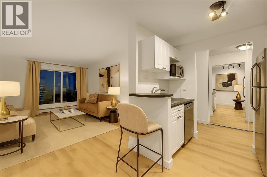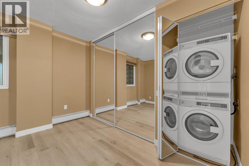 Welcome to Wellington Estates, a 5th floor concrete built gem in the heart of Calgary’s vibrant Beltline! SWEET HOME! Indulge in upscale, maintenance free living in this completely updated condo offering one bedroom, one bathroom, and condo fees that include gas and electricity! Step inside and you’ll be impressed by the sophisticated open concept layout featuring numerous upgrades with new windows and patio door ( rare in this building) , new bathtub and new luxury vinyl plank flooring throughout... no carpet, no stress. This bright and modern condo delivers the best of central living with unbeatable value and style. The sunny open floor plan feels both fresh and functional. The crisp white kitchen shines with newer stainless steel appliances and a mini breakfast bar that’s perfect for your morning latte or late night chats with friends. The large west facing balcony captures golden hour sunsets and urban views, the perfect spot for your plants, patio lights, or an evening glass of wine.The spacious bedroom offers just the right touch of privacy, while the ensuite washer and dryer is tucked neatly into a closet for convenience. The four piece bath features stylish tiled finishes and clever storage solutions. Secure underground parking means no more scraping ice or searching for a spot, and peace of mind comes with a solid, well managed building boasting a new roof, upgraded boiler, and a healthy reserve fund. With low condo fees that include all utilities, this unit is budget friendly, worry free, and ready for your inner city lifestyle. Live where the city buzzes with nightlife, shopping, and parks are all at your doorstep. With a walkability score of 9.7 you can’t beat the location and living has never been this convenient or fun with countless amenities including Sunalta LRT just steps away, coffee shops, restaurants, bakeries, parks, gyms, spas, salons, fashion boutiques, healthcare , wellness services, grocery stores, and even a car wash! Whether you’re a you ng professional seeking home ownership or a savvy investor looking for a solid investment opportunity, this condo is a must see!!Come home to an exceptional living experience anything else is a compromise! Book your showing today! (id:6769)