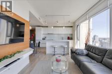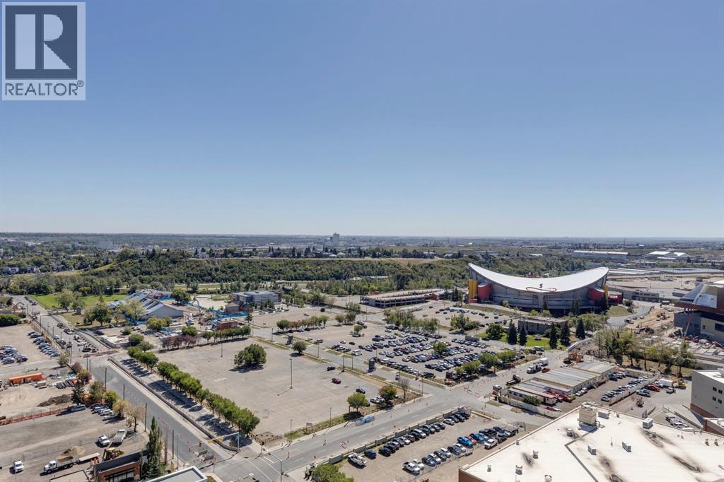 Welcome to this luxurious 23rd floor CORNER UNIT in the prestigious Guardian North building of downtown Calgary. This exceptional residence offers PANORAMIC East River views and Stampede Grounds views from its TWO BALCONIES. The suite features two spacious bedrooms and two full bathrooms, including one ensuite. The gourmet kitchen features a LARGE QUARTZ ISLAND, high-end stainless steel appliances and built-in European-styled cabinetry. FLOOR-TO-CEILING windows surround the open-concept living room and dining area, enhancing the space with plenty of natural light. The unit also features one titled UNDERGROUND PARKING stall, IN-SUITE LAUNDRY, a separate storage locker, concierge services, and fantastic AMENITIES including a social lounge, garden terrace, gym with squat racks, and a well-equipped workshop. Located in the trendy neighbourhood of Victoria Park, you'll be steps away from ICONIC LANDMARKS including the Saddledome, Stampede Park, the National Music Centre, Calgary's renowned Central Library and BMO Centre. Embrace the epitome of urban living in this exquisite 2 bedroom unit that effortlessly combines luxury, comfort, and convenience! All furniture is negotiable. (id:6769)