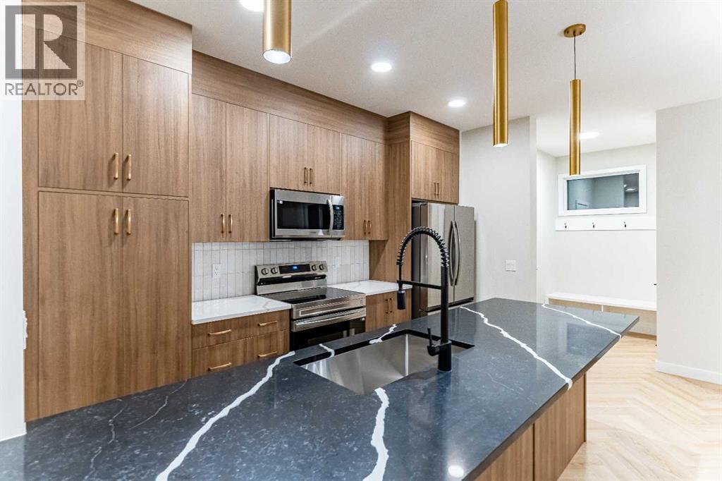 Brand New, Double Detached Garage, Herringbone Pattern LVP and 9ft ceilings on Main, Open Concept, Practically Laid out- This home has it all. Welcome to this beautifully designed townhome , in the dynamic and growing community of Cobblestone in Airdrie!This stunning home in a modern tri-plex perfectly blends style, comfort, and functionality—ideal for families, first-time buyers, or down sizers seeking a spacious, low-maintenance lifestyle.Featuring 3 bedrooms, 2.5 bathrooms across 1,529 sq. ft. of thoughtfully designed living space, this brand-new home offers an open-concept main floor with 9’ ceilings and seamless flow between the kitchen, dining, and living areas—perfect for everyday living and entertaining.The contemporary kitchen is sure to impress with light-dark quartz countertops combination with a beautiful backsplash, sleek cabinetry, providing ample prep space and casual dining options.Upstairs, the primary suite serves as a peaceful retreat with a private ensuite and generous walk-in closet space. Two additional bedrooms are ideal for kids, guests, and a home office/ flex room in addition to the convenient upper-level laundry.Enjoy the benefits of a detached double garage and paved back lane access.Located in the sought-after Cobblestone community, you’ll love the proximity to schools, parks, shopping, and major routes—making it easy to commute to Calgary or escape to the mountains on weekends.Don’t miss your chance to own this stylish, move-in-ready home in one of Airdrie’s exciting new neighbourhood. Book your private showing today! (id:6769)