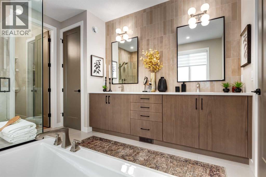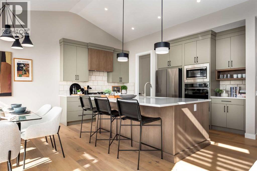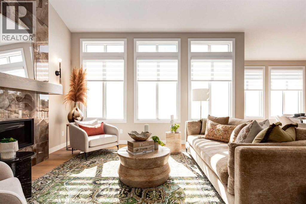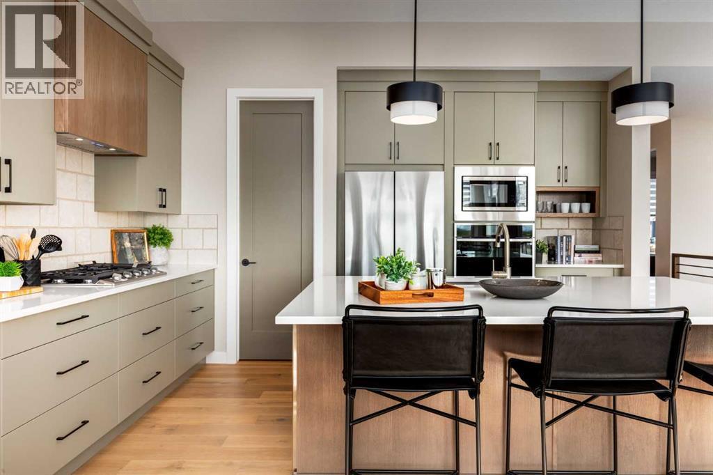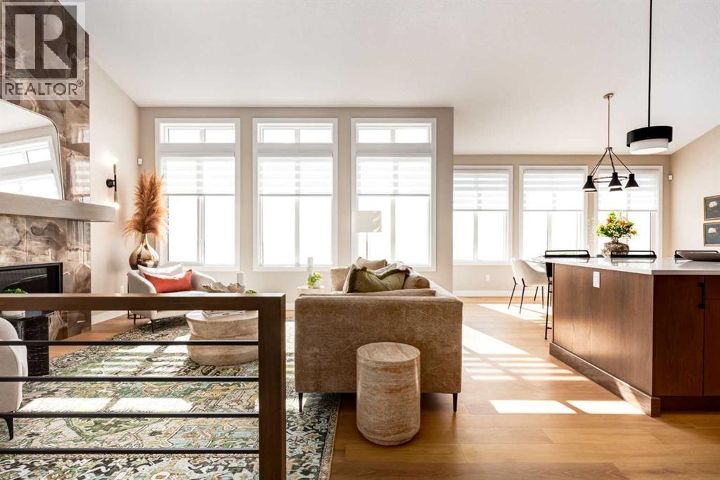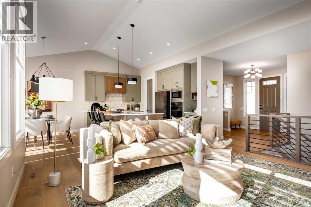 This stunning, newly built bungalow in the prestigious community of Cimarron Estates will be ready for possession in April 2026! For a limited time, you can select the interior finishes for this home, creating a customized property that perfectly reflects your style. Situated on a 17,000 sqft walkout lot with views to greenspace and no neighbour behind, this is truly a rare opportunity. As the last newly built home in Cimarron Estates, don’t miss your chance to secure this one-of-a-kind property. With nearly 3,000 sqft of developed living space, this fully finished home blends luxury and comfort. The main level spans 1,740 sqft, featuring an expansive open-concept living area with vaulted ceilings in the kitchen, dining room, and great room, creating an airy, inviting atmosphere. A wall of rear windows fills the space with natural light, while beautiful hardwood flooring flows throughout. At the heart of the home is a gourmet kitchen with a walk-in pantry, full-height cabinetry, a large island with a beverage cooler, and premium stainless-steel appliances, including a gas cooktop, range hood, wall oven, microwave, and French-door fridge. The kitchen seamlessly connects to the dining area with access to the full-width deck overlooking the backyard & greenspace, as well as the great room, highlighted by a striking floor-to-ceiling tiled fireplace. The primary retreat features a spa-inspired ensuite with dual sinks, a full-tile walk-in shower, a soaker tub, and a large walk-in closet with direct access to the laundry room for added convenience. Completing the main floor are a mudroom off the garage, a 2-piece powder room, and a versatile den/flex room. The fully finished walkout basement adds 1,153 sq. ft. of living space, including two generously sized bedrooms, a full bathroom with dual sinks, and a massive storage/mechanical room. A bright, open rec room with an electric fireplace and a dedicated games area framed by large windows makes the lower level both function al and inviting. From here, walk out to a spacious covered patio and the expansive yard. Other highlights include a side-drive triple-car garage, 8-foot interior doors, premium finishes, and a thoughtful layout designed for modern living. Don’t miss this opportunity to own the final newly built home in Cimarron Estates—a home that offers space, privacy, and luxury in one of Okotoks’ most sought-after communities. **Note: Photos are from a previous show home and may not be an exact representation of the property. (id:6769)