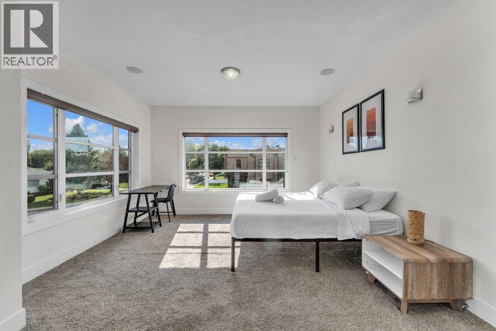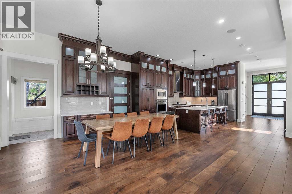LEGAL CARRIAGE SUITE | MASSIVE CORNER LOT | TRIPLE CAR GARAGE | WINSTON HEIGHTS | 5000+ SQ FT OF LIVING SPACE | SEPARATE BASEMENT ENTRANCE | 9 BED & 1 OFFICE & 7 BATH | AC |Step into a world of timeless elegance and unmatched comfort in this extraordinary two-storey home offering over 5,000 sq ft of luxurious living space, nestled on a sprawling corner lot of more than 6,000 sq ft in the highly sought-after community of Winston Heights. With 9 bedrooms, 7 bathrooms, 1 office, a legal carriage suite, and a basement with a separate entrance, this is the perfect property for multi-generational living, rental income, or those simply seeking space, prestige, and function—just minutes from downtown Calgary.As you approach the home, the curb appeal is immediately striking—classic architecture framed by mature trees and a stately corner presence. Step through the elegant double French doors, and you’re instantly captivated by the sense of grandeur: dark hardwood floors, crown molding, and soaring 11-foot tray ceilings welcome you in, while natural sunlight floods through oversized windows, creating a warm, inviting ambiance throughout. The main floor is thoughtfully designed for both entertaining and everyday living. A spacious office provides the perfect space to work from home, while a separate main floor bedroom with a private 3-piece ensuite offers comfort and accessibility for guests or family members. The heart of the home—the chef-inspired kitchen—features ceiling-height wood cabinetry, premium built-in stainless steel appliances, and a over-sized island perfect for gathering around. Tucked just behind is your own spice (butlers) kitchen, ideal for keeping the main space pristine while preparing more aromatic dishes.The living room is anchored by a show-stopping tiled fireplace accent wall, creating a cozy focal point. The dining area blends seamlessly into the layout, ideal for large family dinners or hosting guests in style. The main floor also includes a s pacious mudroom, a powder room, and a grand foyer that sets the tone for this impressive residence. Upstairs, the thoughtful layout continues with 5 generously sized bedrooms. The primary retreat is truly a sanctuary: imagine sipping your morning coffee from your private balcony with downtown skyline views, or unwinding in the spa-like 4-piece ensuite featuring dual vanities and a steam shower. A walk-in closet adds to the luxury. This floor also includes two more full bathrooms and a dedicated laundry room for ultimate convenience. Downstairs, the walk-up-to-grade basement suite (illegal) is bright, spacious, and beautifully finished—featuring a full kitchen, a generous recreation room, two large bedrooms, a 4-piece bathroom, laundry machines, and tons of storage. And don’t forget the legal carriage suite above the triple car garage. It features a 1 bed 1 bath. The carriage suite is current tenanted. Outside, your private courtyard offers a serene escape with an outdoor fireplace, perfect for c (id:6769)