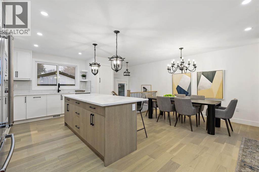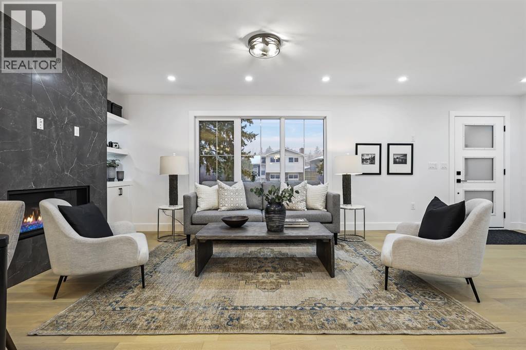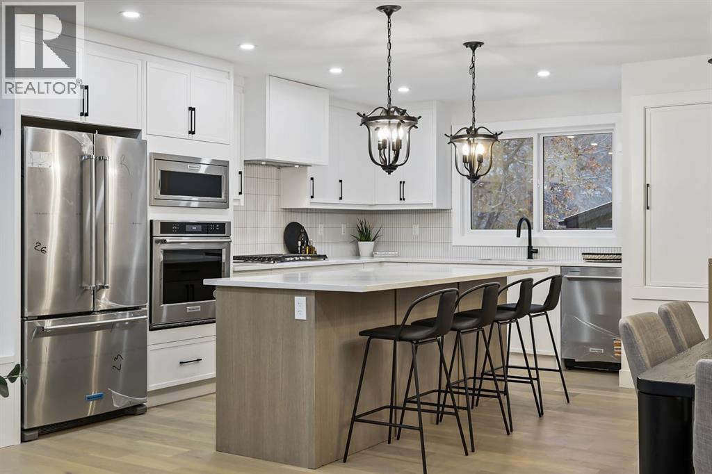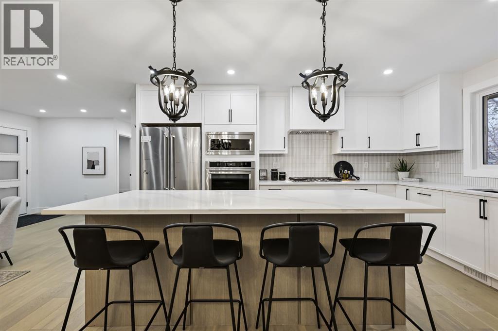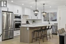Welcome to this stunning, fully renovated bungalow on a large lot in the desirable, family-friendly community of Silver Springs —a quiet, tree-lined neighborhood steps from schools, public transportation, shopping, and countless amenities. This beautifully renovated 4-bedroom, 3-bathroom home offers over 2,300 sq ft of finished living space, thoughtfully designed with clean lines, neutral colors and warm, natural materials throughout. Exceptional curb appeal provides pride of ownership which continues onto the picturesque entry. The main floor showcases engineered hardwood flooring, decorative lit niches and a stylish gas fireplace. The gourmet kitchen is a chef’s dream with quartz countertops, custom cabinetry, an oversized sit-up island, loads of cupboard space, a full suite of premium appliances including a 5-burner gas cook top with a built-in oven and a formal dinning room. The primary bedroom provides a tranquil retreat with designer lighting, spacious walk-in closet, and a spa-like ensuite featuring a double vanity, custom glass shower with rain head, and heated floors. A second bedroom and full bathroom complete the main level. Downstairs, the fully finished lower level is perfect for extended family or entertainment. It features two large bedrooms, a wet bar, a media feature wall, a full 4pc bathroom, and a separate play/gaming/office space. A brand new Electrolux washer/dryer adds to the convenience in your own laundry room. The fully fenced, landscaped yard offers mature trees, perfect for pets, kids, and entertaining. The oversized double detached garage is a true standout. Additional upgrades include: • Hardy board siding • New high-efficiency furnace & Hot water tank • All-new electrical and plumbing • All new windows throughout. Located less than 5 minutes to Stoney Trail, Crowchild Trail, and surrounded by scenic walking/biking paths, and Edworthy Park—this home truly blends style, comfort, and convenience. Perfect for families, or anyone seeking a turnkey property with premium finishes and functional flexibility. Don’t miss out on this exceptional Buy ! (id:6769)