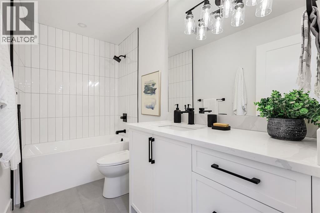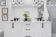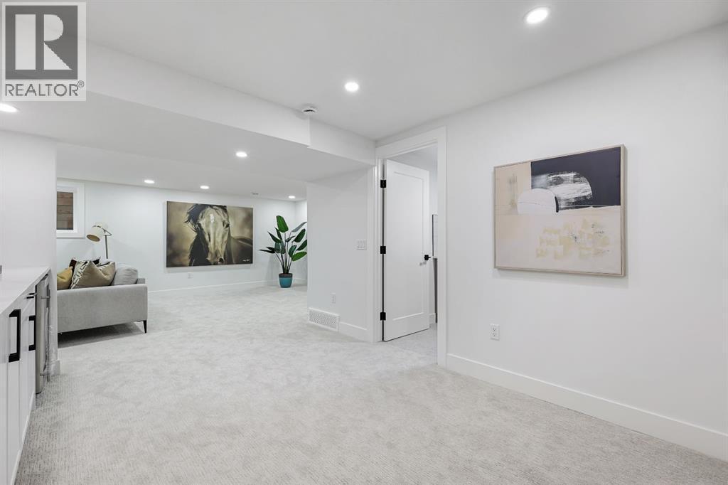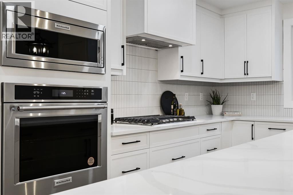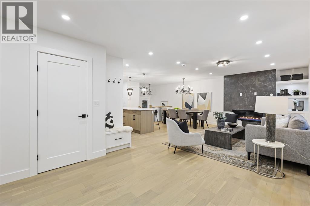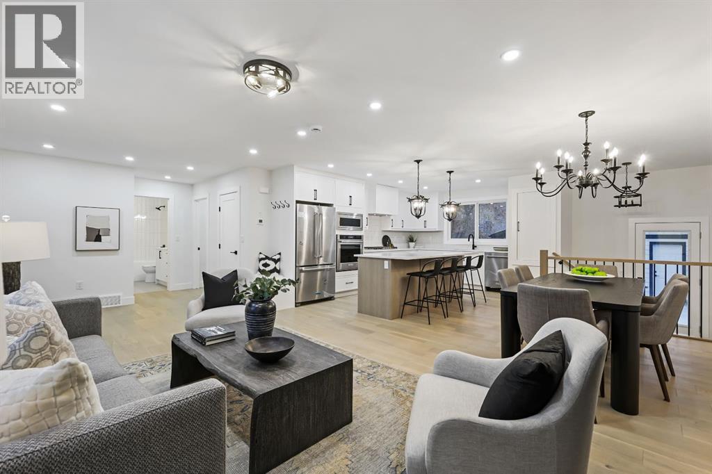 Welcome to this stunning, fully renovated bungalow on a large lot in the desirable, family-friendly community of Silver Springs —a quiet, tree-lined neighborhood steps from schools, public transportation, shopping, and countless amenities. This beautifully renovated 4-bedroom, 3-bathroom home offers over 2,300 sq ft of finished living space, thoughtfully designed with clean lines, neutral colors and warm, natural materials throughout. Exceptional curb appeal provides pride of ownership which continues onto the picturesque entry. The main floor showcases engineered hardwood flooring, decorative lit niches and a stylish gas fireplace. The gourmet kitchen is a chef’s dream with quartz countertops, custom cabinetry, an oversized sit-up island, loads of cupboard space, a full suite of premium appliances including a 5-burner gas cook top with a built-in oven and a formal dinning room. The primary bedroom provides a tranquil retreat with designer lighting, spacious walk-in closet, and a spa-like ensuite featuring a double vanity, custom glass shower with rain head, and heated floors. A second bedroom and full bathroom complete the main level. Downstairs, the fully finished lower level is perfect for extended family or entertainment. It features two large bedrooms, a wet bar, a media feature wall, a full 4pc bathroom, and a separate play/gaming/office space. A brand new Electrolux washer/dryer adds to the convenience in your own laundry room. The fully fenced, landscaped yard offers mature trees, perfect for pets, kids, and entertaining. The oversized double detached garage is a true standout. Additional upgrades include: • Hardy board siding • New high-efficiency furnace & Hot water tank • All-new electrical and plumbing • All new windows throughout. Located less than 5 minutes to Stoney Trail, Crowchild Trail, and surrounded by scenic walking/biking paths, and Edworthy Park—this home truly blends style, comfort, and convenience. Perfect for families, or anyone seeking a turnkey property with premium finishes and functional flexibility. Don’t miss out on this exceptional Buy ! (id:6769)