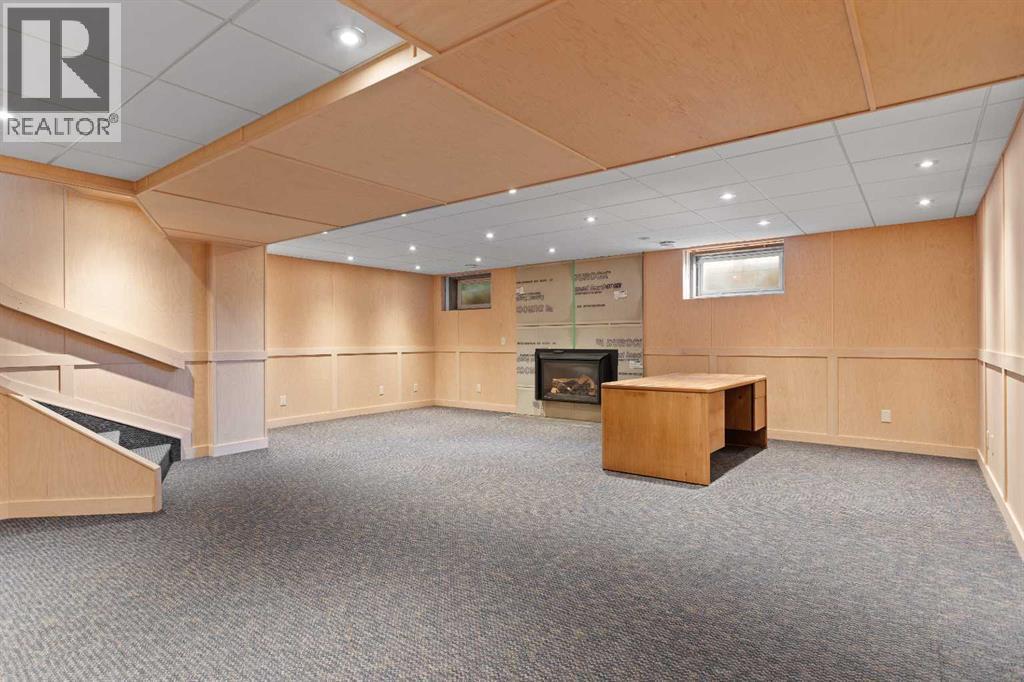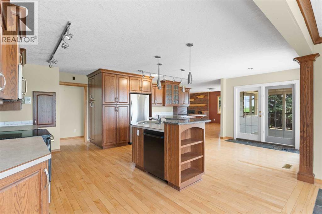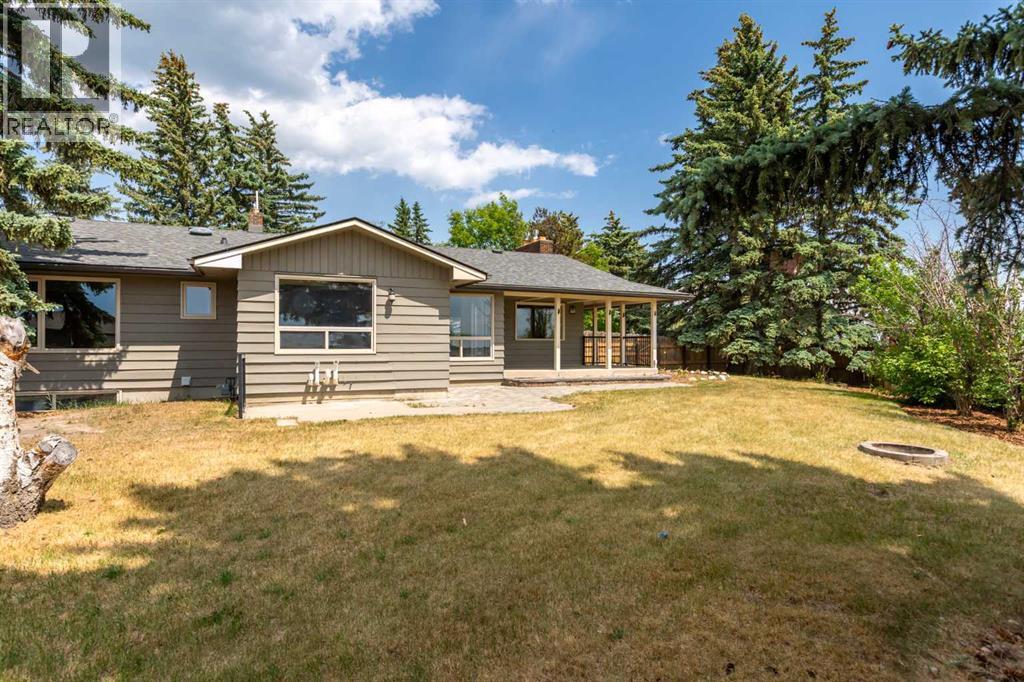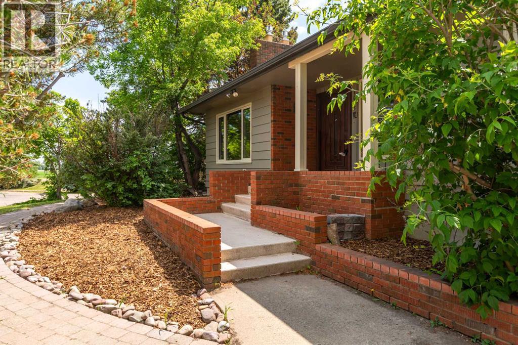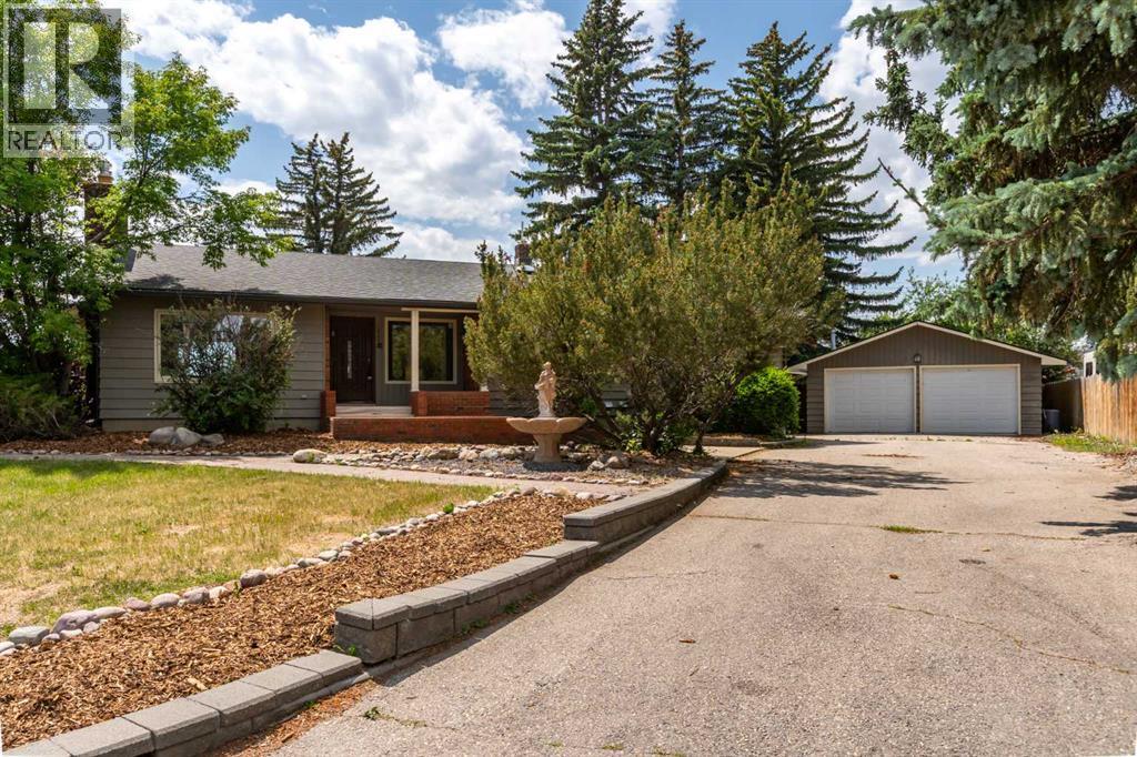 Nestled in a prime SW location, this fully finished 1,857 sq ft bungalow sits on a beautifully landscaped double lot, spanning over 13,000 sq ft. As you enter, you're greeted by a spacious foyer that leads into a generous living room, offering serene views of the backyard and featuring an original wood-burning fireplace with a gas insert. The open-concept kitchen (22' x 18') is a chef’s dream, with granite countertops, custom cabinetry reaching the ceiling, a large island, and a dumbwaiter to the basement hidden behind a discreet push panel. This level also boasts real hardwood floors, a 4-piece bathroom, and three bedrooms, including the 18’ x 11’ primary suite with a 3-piece ensuite. The basement is a cozy retreat with maple wood paneling, two additional bedrooms, a den, a massive rec room with another fireplace, and a 3-piece bathroom. There’s direct access from a side door, and with proper town approval and permits, this space has excellent suite potential. The mature landscaping and stunning southwest-facing views from the backyard and porch are simply unmatched. Additional highlights of this family-friendly home include two sun tubes, on-demand hot water, individual high-efficiency furnaces for each level, and several newer windows. You'll also find a covered carport and a detached, heated, and insulated garage. If you’re seeking a combination of prime location, breathtaking views, and complete privacy, this is the perfect home for you. Be sure to check out the interactive 3D tour and floor plans via the multimedia tab! (id:6769)