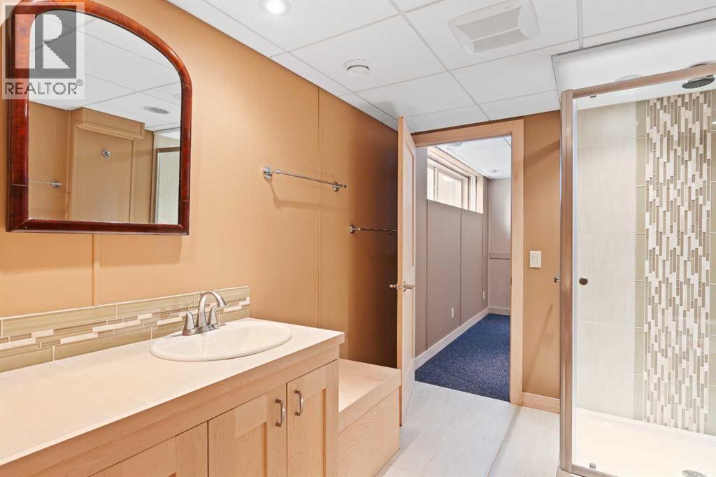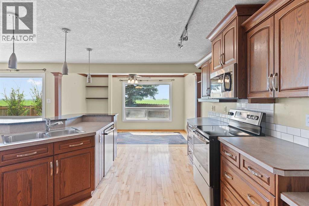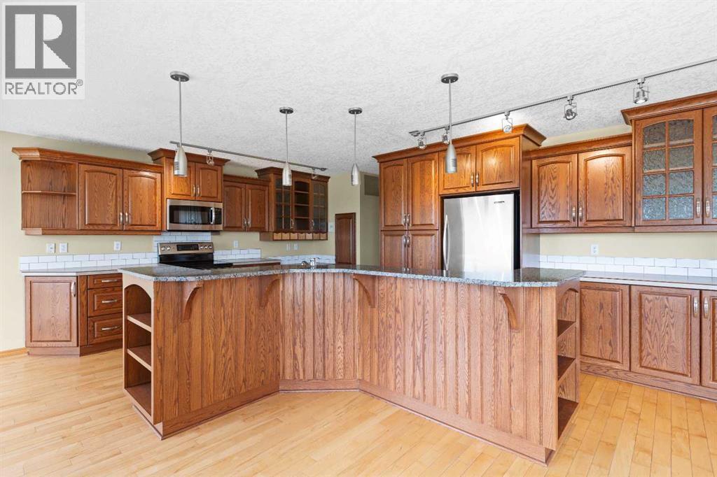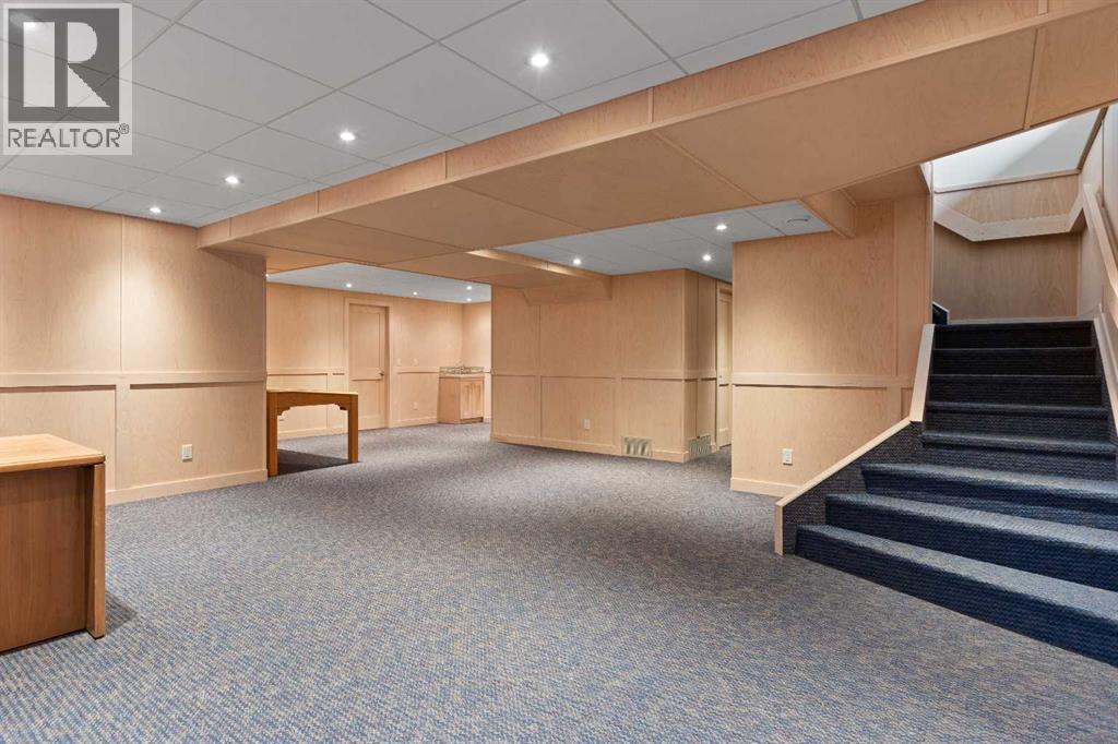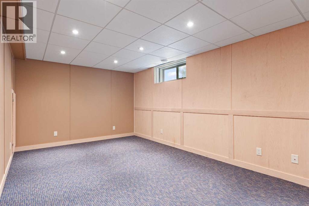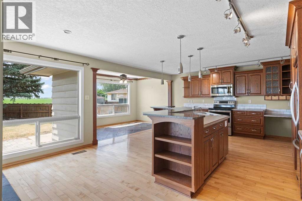 Nestled in a prime SW location, this fully finished 1,857 sq ft bungalow sits on a beautifully landscaped double lot, spanning over 13,000 sq ft. As you enter, you're greeted by a spacious foyer that leads into a generous living room, offering serene views of the backyard and featuring an original wood-burning fireplace with a gas insert. The open-concept kitchen (22' x 18') is a chef’s dream, with granite countertops, custom cabinetry reaching the ceiling, a large island, and a dumbwaiter to the basement hidden behind a discreet push panel. This level also boasts real hardwood floors, a 4-piece bathroom, and three bedrooms, including the 18’ x 11’ primary suite with a 3-piece ensuite. The basement is a cozy retreat with maple wood paneling, two additional bedrooms, a den, a massive rec room with another fireplace, and a 3-piece bathroom. There’s direct access from a side door, and with proper town approval and permits, this space has excellent suite potential. The mature landscaping and stunning southwest-facing views from the backyard and porch are simply unmatched. Additional highlights of this family-friendly home include two sun tubes, on-demand hot water, individual high-efficiency furnaces for each level, and several newer windows. You'll also find a covered carport and a detached, heated, and insulated garage. If you’re seeking a combination of prime location, breathtaking views, and complete privacy, this is the perfect home for you. Be sure to check out the interactive 3D tour and floor plans via the multimedia tab! (id:6769)