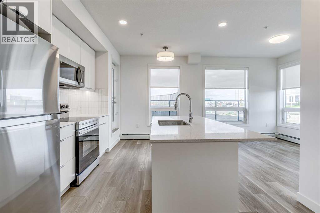 Welcome to this spacious west-facing main floor corner unit, featuring one of the largest decks available (7.2 x 31 ft)—perfect for outdoor entertaining or enjoying your morning coffee in the sun. Inside, the well-designed layout includes a generous primary suite complete with a beautiful 3-piece ensuite, a second bedroom, and a versatile den ideal for a home office. The open-concept living room flows seamlessly into the kitchen, which boasts stunning brand new stainless steel appliances and sleek quartz countertops. A second 4-piece bathroom adds to the unit’s convenience. Additional highlights include in-suite laundry, a titled underground parking stall, and a titled storage locker. Located just across from East Hills Shopping Centre and close to parks, transit, and with quick access to Stoney Trail, this home offers a perfect blend of comfort, lifestyle, and accessibility. In a pet-friendly building with low condo fees, this is an ideal opportunity for first-time buyers, downsizers, or investors looking to be part of Calgary’s vibrant and growing east side. This one has it all—location, layout, and abundant natural light. (id:6769)