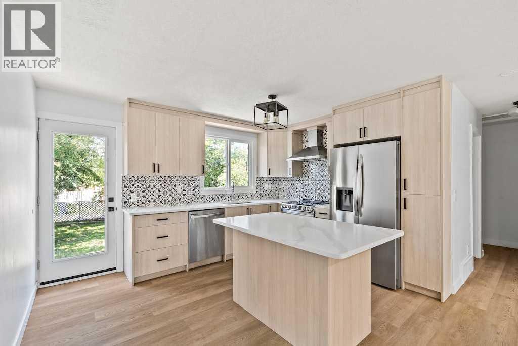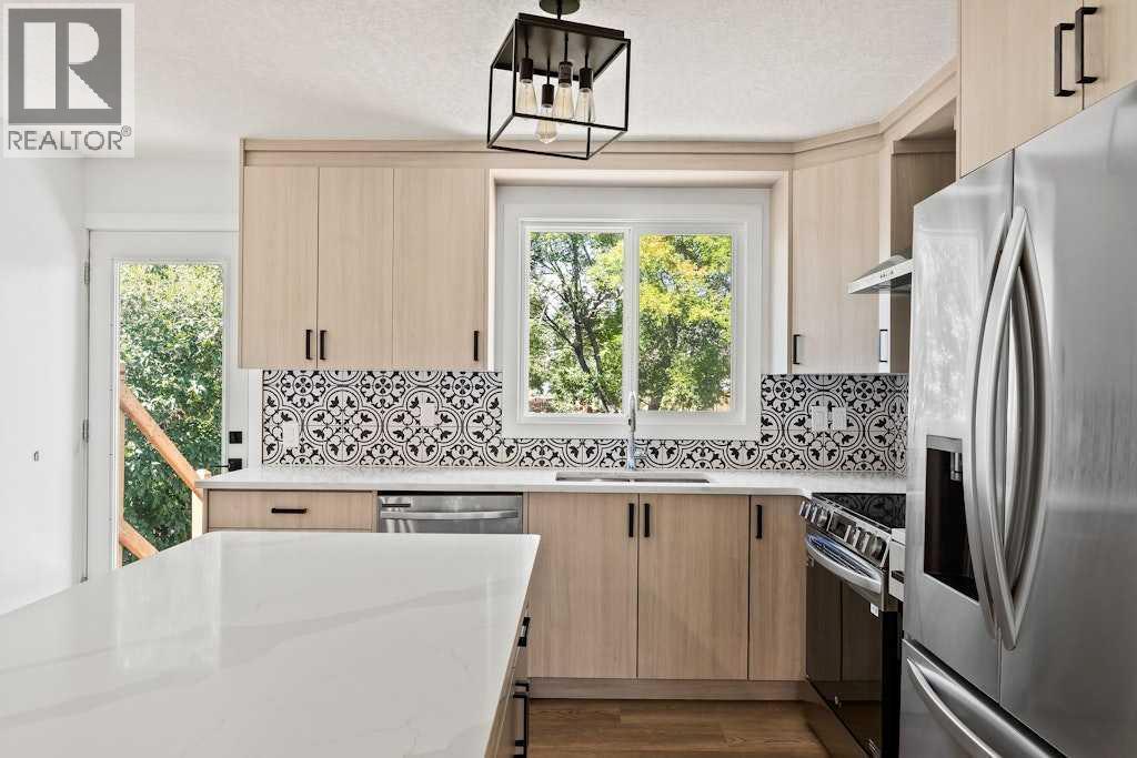 Step into this stunning, move-in-ready bi-level, where every detail has been thoughtfully reimagined for modern living. Extensively renovated from top to bottom, this home boasts new bathrooms, fresh vinyl plank flooring, and a completely redesigned kitchen with sleek new cabinetry, quartz countertops, a central island, stainless steel appliances, a statement range hood, and a Moroccan-style tile backsplash that adds a touch of character & charm. Sunlight pours through the new upstairs windows, enhancing the open-concept living & dining area, complete with a stylish new railing and doors. The main level features two spacious bedrooms, including a serene primary suite with a walk-in closet outfitted with custom organizers and a private 3-piece ensuite. The fully renovated main bath adds an extra touch of luxury. Downstairs, the fully finished basement offers exceptional versatility, with two additional bedrooms, a full 4-piece bath, laundry room, and a wet bar - perfect for extended family, guests, or entertaining. Brand new exterior doors provide both style & security on an extra large lot. Ideally located close to Village Square Leisure Centre, all levels of schools, shopping, and public transit, this home combines sophisticated upgrades with an unbeatable location. (id:6769)