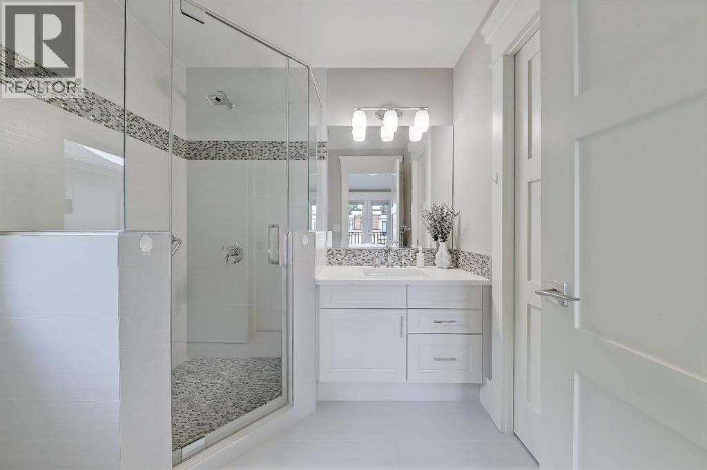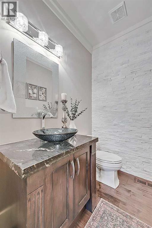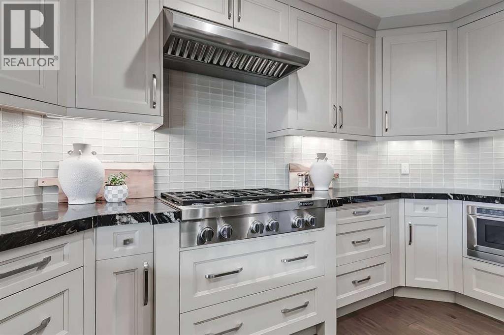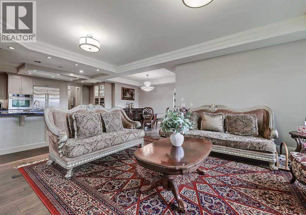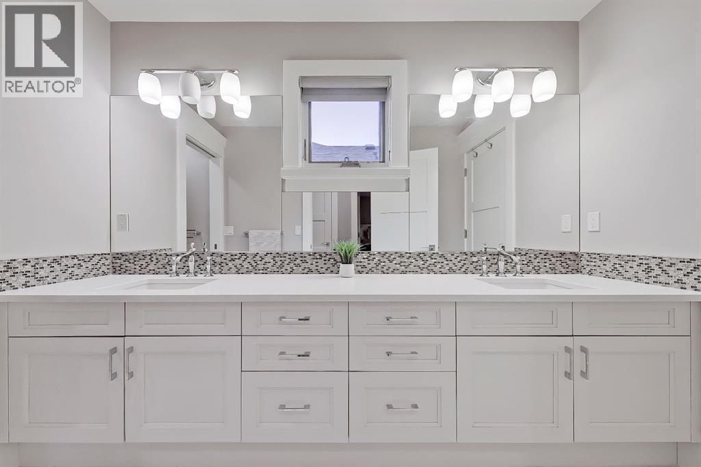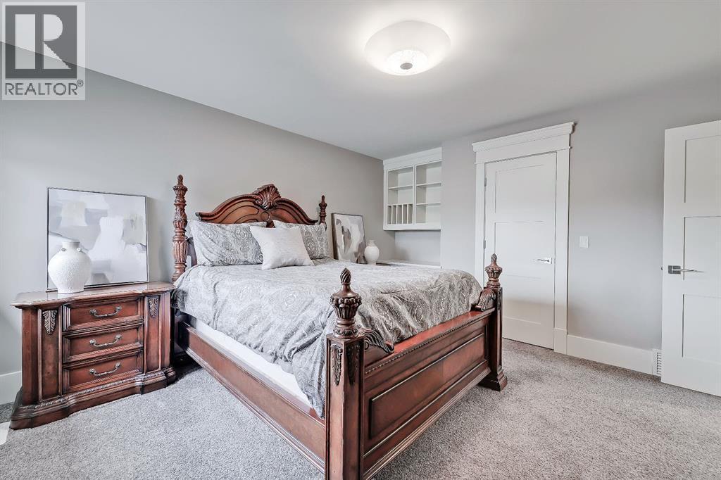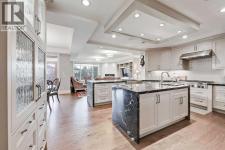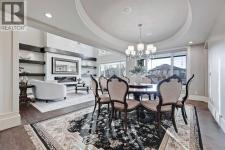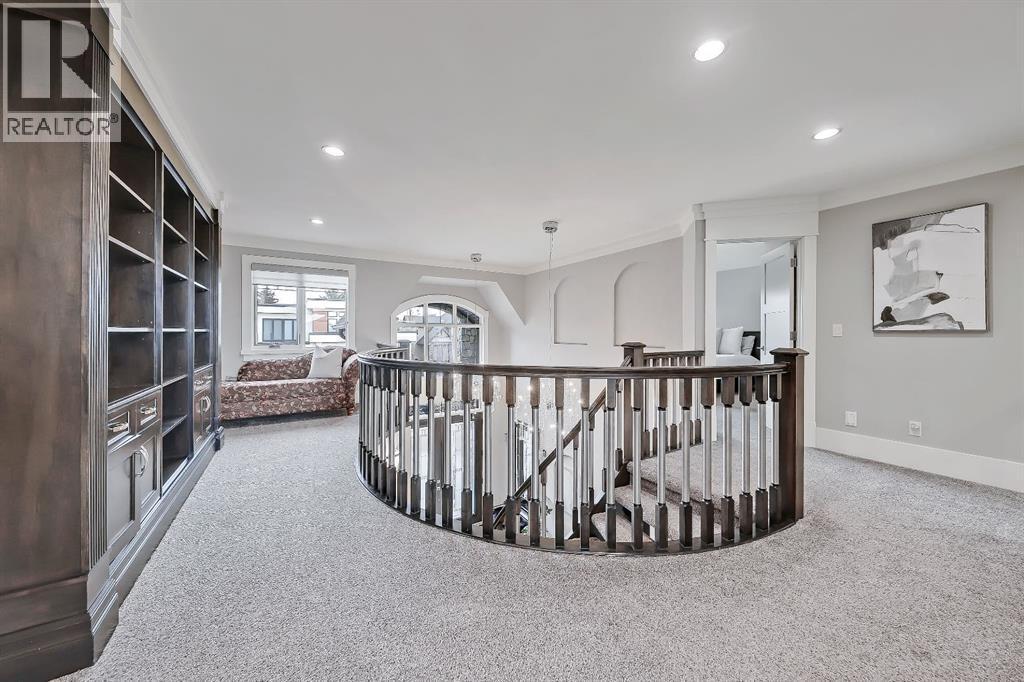 This exceptional Aspen Woods residence captures the best of west-side living—space, light, and quiet sophistication. Set on a 65’ x 136’ lot with a west-facing backyard and no rear neighbours, this well designed home offers over 6,200 sq.ft. of thoughtfully crafted living space. Soaring 19-ft ceilings, a chef-inspired kitchen, elegant living and dining areas, and a full lower-level entertainment zone define this remarkable home. A stone-and-stucco exterior, exposed aggregate drive, and heated 4-car garage set an impressive tone. Inside, a grand curved staircase and statement chandelier anchor the foyer. The living room features double-height ceilings and a full-height stone fireplace beside the formal dining area with bar and display cabinetry making this the perfect place to entertain friends and family. The kitchen connects effortlessly to the family room and breakfast nook, featuring JennAir appliances, granite counters, a prep island, bar seating, and walk-in pantry. A refined office with a built-in granite-topped desk and custom millwork creates a sophisticated and luxurious workspace for ultimate comfort and productivity. Nicely completing this floor is a large laundry with ample counters and storage, a stylish powder room featuring a stunning stone accent wall, and a well-appointed mudroom with custom built-ins. Upstairs, the primary suite is a true retreat with sitting area, walk-in closet, and spa-inspired 5-pc ensuite with two-way fireplace, freestanding tub, dual vanities, and tiled shower. An additional 3 bedrooms include one with ensuite and balcony, plus two sharing a 5-pc bath and loft nook. The walkout lower level impresses with a large rec area, wet bar, wine room, fourth gas fireplace, two bedrooms, and two full baths. Additional highlights include central A/C, in-floor heat rough-in, new high-efficiency hot water tank (2025), covered patio, upper deck, pro landscaping with irrigation, smart exterior lighting, and a six-camera security system. Quie tly tucked on a cul-de-sac near top private schools (Rundle, Webber & Calgary Academy), Aspen Landing, Westside Rec, LRT, and pathways—this is elevated west-side living at its finest and the perfect place to call home. (id:6769)
