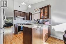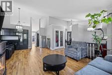 Welcome home! This inviting bi-level walkout home combines warmth, style, and thoughtful upgrades and nicely nestled on a huge treed lot with direct access to peaceful green space right out your back door! The open-concept main level features soaring ceilings that fill the living and dining areas with natural light and the beauty of real hardwood floors add warmth and timeless charm throughout. The updated kitchen showcases maple cabinetry, granite countertops, and brand-new stainless steel appliances, offering both beauty and functionality. Two spacious bedrooms on the main level (easily converted back to three) plus two full bathrooms provide flexibility and comfort for family or guests. The bright walkout lower level features in-floor heating, wide-plank luxury vinyl flooring, a large recreation room with cozy gas fireplace, a third bedroom, a den, laundry and a stylish 3-piece bathroom — ideal for additional living space, guests, or a home office. Step outside to enjoy a rubberized exterior deck, permanent exterior decorative lighting, large shed and a sunny south-facing yard with landscaped grounds accented by stonework and Rundle Rock detailing. Major features include newer shingles + leaf filter system, updated windows, furnaces, HWT and water softener …. all providing peace of mind and lasting value. An oversized garage completes this exceptional property. Backing onto miles of walking paths and open space, this home offers the perfect blend of comfort, quality, and a location that is close to everything that matters. (id:6769)