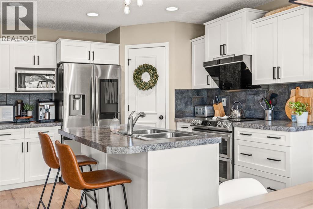 Welcome to this charming and move-in-ready 3-bedroom, 2.5-bathroom home nestled in the vibrant and family-oriented community of Cranston. With new flooring on the main level, freshly painted walls, newer appliances, and a bright, open layout, this home offers comfort, style, and plenty of space for your growing family.Step inside to the warm and inviting open-concept main floor that’s perfect for family time and entertaining. The spacious living room complete with large windows that fill the space with natural light, while the beautiful kitchen features newer stainless steel appliances, ample cabinetry, a large island, and plenty of counter space — perfect for meal prep.Upstairs, you’ll find a sizeable bonus room with a corner fireplace, and wired for sound, the perfect space to spend cosy family nights curled up watching movies, while catching seasonal glimpse of the Mountains from the large window. Continuing on upstairs you will find a spacious primary suite with a well organized walk-in closet and a 4 piece ensuite bathroom, an additional two bedrooms and a 4 piece bathroom round out this level. Outside, enjoy your private backyard with patio - ready for BBQs, playtime, or quiet evenings around the fire pit under the prairie sky. The double attached garage offers plenty of room for vehicles, bikes, tools and extra storage.Located on a quiet, family-friendly street, this home is just minutes from schools, playgrounds, shops, walking paths, community parks, and the Cranston Residents Association, which offers year-round activities and amenities. Plus, you’re only a short drive to further shopping, restaurants, and the South Health Campus, with quick and easy access to both Deerfoot and Stoney Trails.This lovely home has been thoughtfully cared for and is ready to welcome its next family — come see why so many people love calling Cranston home, schedule your private showing today! (id:6769)