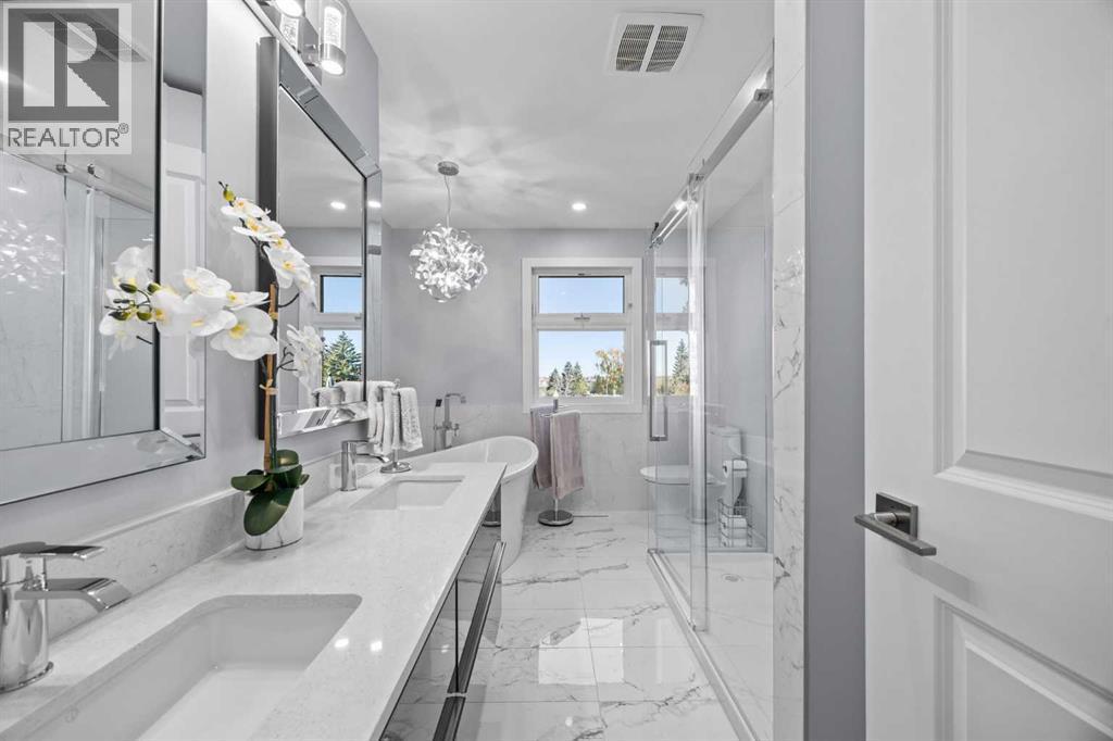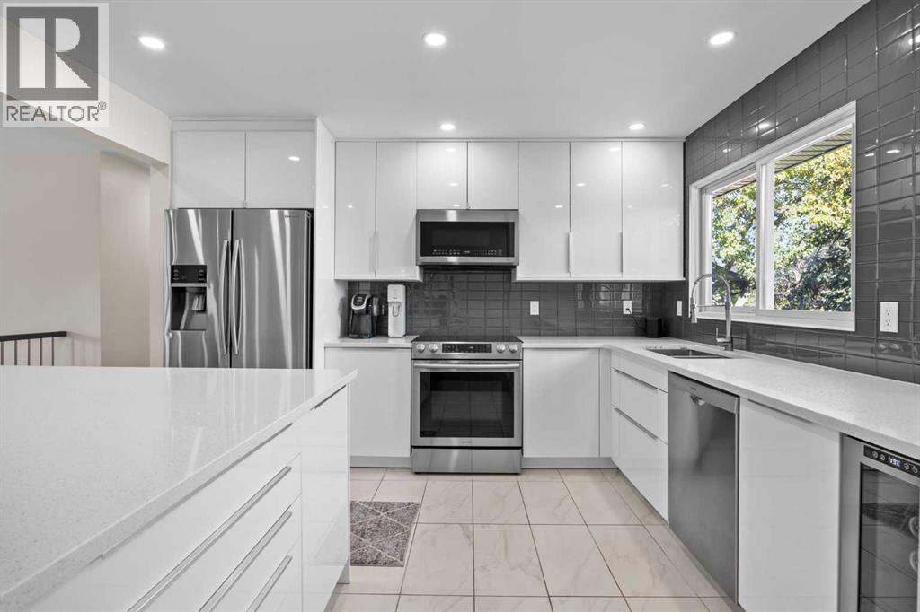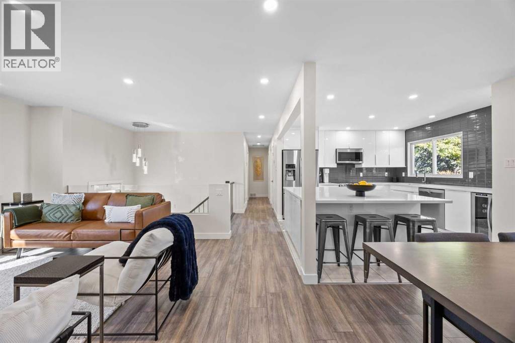 Welcome to this STUNNING, fully renovated family home in the heart of Canyon Meadows!Quietly tucked away on a peaceful street and just steps from schools, parks, and outdoor rinks, this beautifully updated 4-bedroom, 2-bath bi-level offers nearly 2,200 sq. ft. of stylish, functional living space designed for modern family living.From the moment you arrive, you’ll notice the incredible curb appeal — the sleek acrylic stucco exterior, updated roof, soffits, fascia, eaves, and fresh landscaping give this home a polished, contemporary look. Step inside to discover a bright, open-concept layout filled with natural light, showcasing a complete transformation where every detail has been thoughtfully updated — including windows, doors, LED pot lighting, high-efficiency furnace, hot water tank, electrical, and new A/C for year-round comfort.The heart of the home is the custom designer kitchen, featuring a large quartz island, stainless steel appliances, high-gloss cabinetry with soft-close doors, and beautiful custom tile finishes — perfect for entertaining or family gatherings. The seamless flow into the spacious living and dining areas creates an inviting atmosphere ideal for both everyday living and special occasions.Downstairs, the fully developed lower level offers even more versatile living space — perfect for a family room, games area, or guest retreat — along with two additional bedrooms and a full bathroom.With all the major updates complete and every space finished to perfection, this home is truly move-in ready. Located in one of Calgary’s most desirable communities, you’ll love the perfect blend of comfort, style, and convenience.Don’t miss your opportunity to call Canyon Meadows home — book your private showing today! (id:6769)
