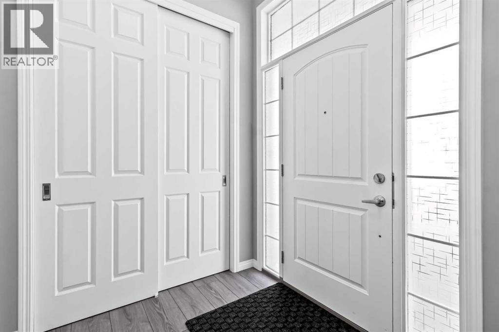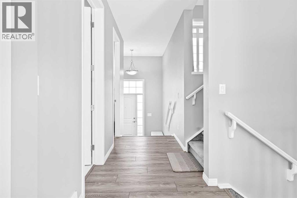 Offering 2,380+ SQFT of modern living space, this beautifully designed 2-storey home, built in 2020, is perfect for a growing family. Step inside to a grand 12-foot foyer that sets the tone for the open-concept main floor. With 9-foot ceilings and luxury vinyl flooring, the layout seamlessly blends style and functionality. The living room features a sleek gas fireplace, creating a warm and inviting atmosphere for relaxing or entertaining. The chef-inspired kitchen is equipped with quartz countertops, a central island, a walk-in pantry, and stainless steel appliances including a gas stove. Just off the kitchen, the dining nook offers the ideal setting for family meals and gatherings. A stylish half bath and a convenient laundry room complete this level. Upstairs, you’ll find a bonus room with soaring 14-foot vaulted ceilings and oversized windows that fill the space with natural light. Step out onto the private front balcony to enjoy sunrises and peaceful mornings. The primary suite is a true retreat, featuring a spacious walk-in closet and a spa-like 5-piece ensuite with a soaker tub, oversized glass shower, and dual vanity. Two additional bedrooms and a full 4-piece bath provide comfort and flexibility for family or guests. The full unfinished basement is ready for your personal touch, complete with rough-in plumbing for a future bathroom—ideal for a home gym, media lounge, or extra living space. Additional highlights include a double attached garage, a Virtuo Fresh Air System for optimal indoor air quality, and a fenced backyard— perfect for gardening, pets, or summer BBQs. Located close to parks, pathways, Carrington Plaza, and with easy access to Stoney Trail and the future Green Line LRT, this home truly has it all. (id:6769)