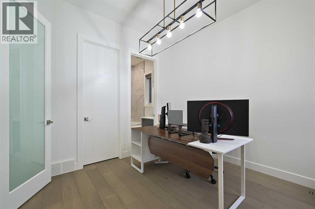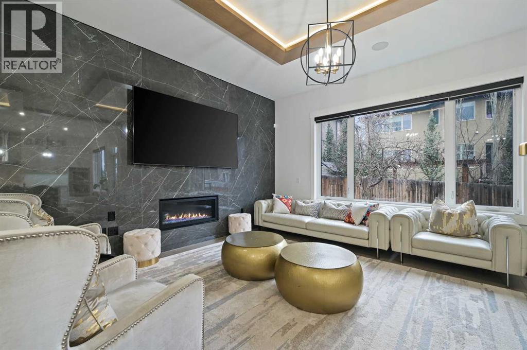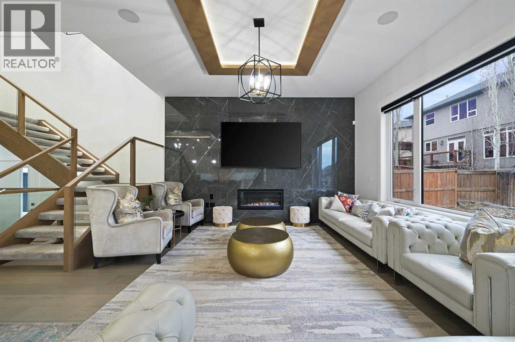 Welcome to 7250 Elkton Drive SW, a stunning estate home offering over 4,500 SQFT of beautifully developed living space with 7 bedrooms in the prestigious community of Springbank Hill. From the moment you step inside, you'll be captivated by the home’s stature, warmth & elegant design, where a sprawling yet intimate floor plan perfectly balances grand entertaining and cozy family living. The main floor features a bright living room, spacious home office or guest suite. The heart of the home is the magazine-worthy chef’s kitchen, boasting a dramatic oversized quartz apron island, high-end appliances, a generous walk-in pantry, and an open layout that flows seamlessly into the dining and living areas, where guests can gather around the stunning floor-to-ceiling tiled fireplace. Step outside to the expansive rear deck and let the kids play under the shade of a majestic historic tree. Upstairs, the luxurious Primary Suite offers a private retreat with its own sitting area and access to a front patio with city views, plus a spa-like ensuite featuring a standalone glass shower, tear-drop soaker tub, and a fashion-lover’s dream walk-in closet. The second bedroom enjoys its own private ensuite, while the third and fourth bedrooms share a convenient Jack-and-Jill bathroom, with upper laundry completing the level. The fully finished basement extends the living space with a sleek wet bar, custom built-ins, and two additional bedrooms, perfect for extended family or guests. A triple garage with epoxy floors, an EV charger, and private entrances from both the garage and side patio add incredible convenience. With central A/C and situated minutes from top schools, shopping, fine dining, and recreation, this home is the perfect blend of luxury, functionality and timeless charm - your dream oasis awaits! (id:6769)