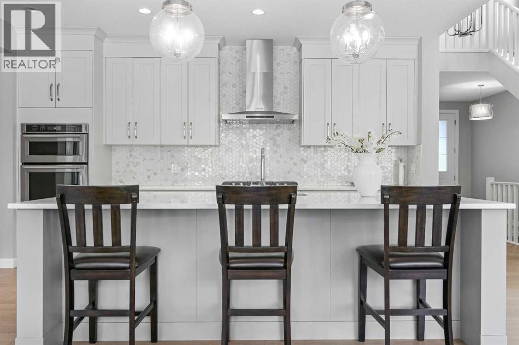Welcome to 224 Cranbrook Drive SE, a stunning executive 2-storey with 4 bedrooms and 5 bathrooms, backing onto a peaceful reserve in desirable Cranston. This bright open floor plan features a chef’s kitchen with central island, stainless steel appliances, new refrigerator, and new stove, and butler’s pantry, open to a spacious great room with cozy fireplace, a large dining room, and oversized sliding doors leading to a huge patio and outdoor living space. A private office and spacious mudroom with built-in lockers add everyday convenience. Upstairs offers a bonus room with vaulted ceilings and reserve views, plus three bedrooms including a luxurious primary retreat with walk-in closet and spa-inspired 5-pc ensuite with soaker tub and separate shower that flows into a huge laundry room with sewing or office space. Two additional bedrooms each feature walk-in closets and private ensuites. The fully developed basement extends your living space with a large rec room, wet bar, full bath, and an additional bedroom with walk-in closet. Outdoor living shines with a deck and patio, all backing onto tranquil green space. Pride of ownership is evident throughout, with additional highlights including a triple attached garage with built-ins, smart home access, dual furnaces, humidifier, and efficient hot water. Exceptional value and an excellent family home that blends elegance, comfort, and location! (id:6769)