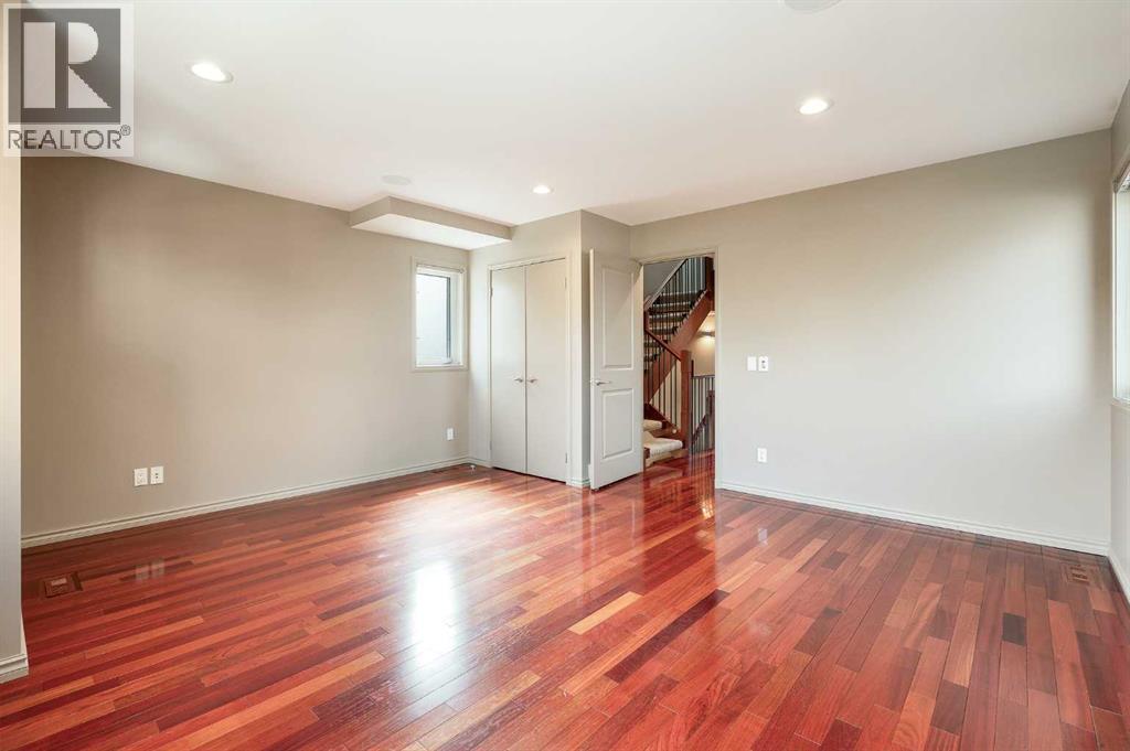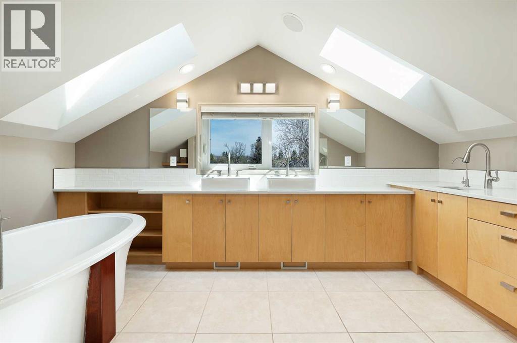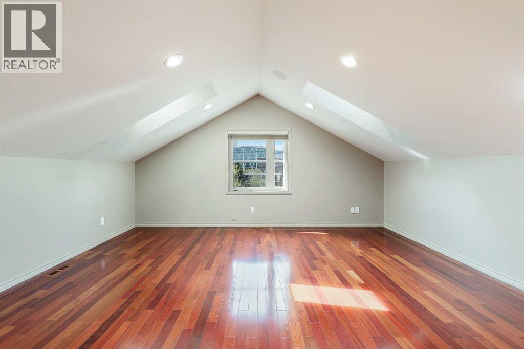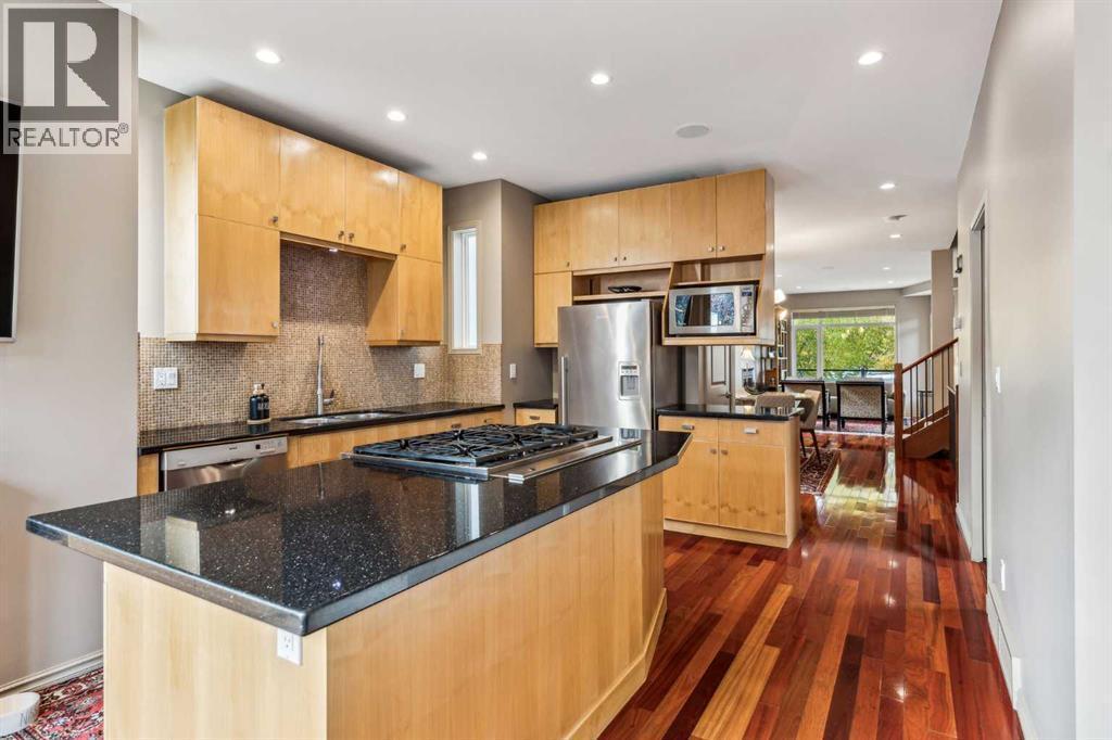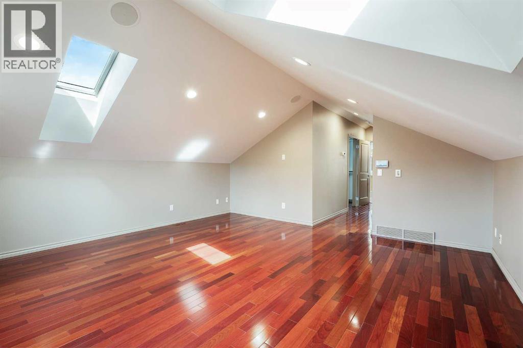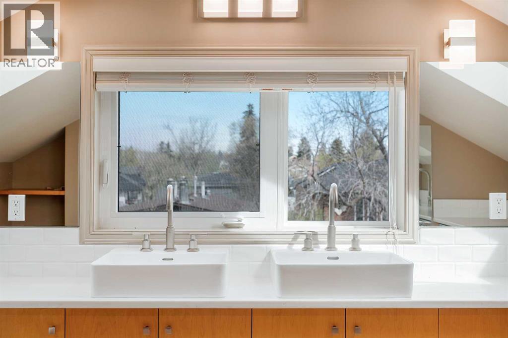 Nestled on a quiet tree-lined street in the long-established community of Capitol Hill, this European inspired 3 bedroom home with private SOUTH FACING back yard offers over 2700 sq ft of developed living space. The main level presents glossy Brazilian cherry Jatoba hardwood floors, high ceilings & is illuminated with recessed lighting, showcasing the front living room with feature fireplace, dining area with stylish light fixture & gorgeous kitchen that’s tastefully finished with solid wood hand build cabinetry, island, granite counter tops, top of the line stainless steel appliances, cozy breakfast nook & folding Tesoro door system opening to the south facing, private composite deck. A 2 piece powder room completes the main level. A custom staircase with auto LED lighting leads to the second level (also adorned with Jatoba hardwood) that hosts 2 spacious bedrooms, a 4 piece bath with Fiat steam shower & laundry room with sink. The newly renovated primary suite encompasses the entire third level & is a true private oasis. Features include a huge bedroom with vaulted ceiling & skylights, to-die-for walk-in closet & opulent ensuite with programmable heated tile floors, dual sinks, coffee bar with sink, beverage centre & filtered water station, a walk-in shower, heated air tub with remote & skylights. Basement development comprises of a recreation/media room with custom millwork, porcelain tile flooring, 2 built-in entertainment centres & electric fireplace. A large flex space with custom hand made closet could be used as a home gym area or studio. Other notable features include fresh paint throughout, upgraded LED lighting with Lutron touch dimmer switches, built-in ceiling speakers, tankless hot water tank, central air conditioning, newer modulating furnace, security system & 50 year rubber roof. Outside, enjoy the private south facing professionally landscaped yard with mature flowering trees, rundle rock garden & maintenance free astro-turf. Parking is a breeze wi th a heated, insulated, fully finished garage with new door & lift hardware. The prime location can’t be beat – close to popular neighbourhood amenities such as Earl’s, Starbucks, Weed’s Café, Edelweiss Village, Confederation Park, two community centres, shopping, exceptional schools, public transit, SAIT & U of C & and whether you’re walking, taking transit or Uber, its an easy commute to the downtown core. Trendy Kensington with Riley Park, shopping & patios is also within walking distance. (id:6769)