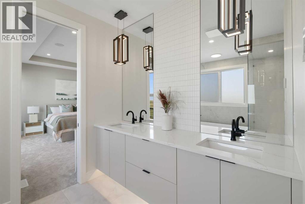 Welcome to Sunset Ridge, where luxury meets lifestyle in this stunning 3,000 sq ft home by Green Cedar Homes. With 4 bedrooms, 4 bathrooms, a walk-out basement, and a triple attached garage, this residence embodies modern design, functional living, and elevated craftsmanship—all set against Cochrane’s signature mountain backdrop.Step into a bright, open main floor designed for both comfort and connection. The chef-inspired kitchen serves as the heart of the home, featuring premium finishes, sleek cabinetry, and a seamless flow into the dining and living areas. A gas fireplace anchors the living room, creating warmth and elegance—the perfect setting for family gatherings or quiet evenings in.A flex room on the main floor provides versatility for a home office, study, or formal sitting area, while a walk-through pantry and mudroom add convenience to everyday living.Upstairs, retreat to a luxurious primary suite with a spa-style ensuite—complete with dual vanities, a freestanding soaking tub, and an oversized shower—alongside a generous walk-in closet. Three additional bedrooms, each with access to full bathrooms, and a spacious bonus room complete the upper level, balancing comfort with style.The undeveloped walk-out basement offers endless potential for a custom entertainment area, gym, or guest suite—ready for your personal touch.Located in Sunset Ridge, one of Cochrane’s most sought-after communities, residents enjoy scenic trails, parks, schools, and breathtaking Rocky Mountain views, just minutes from every convenience.Built with precision and care by Green Cedar Homes, this property captures the essence of modern family living—elegant, spacious, and designed to impress. (id:6769)