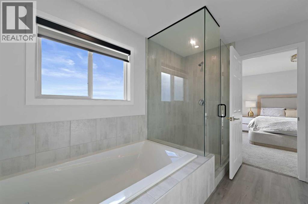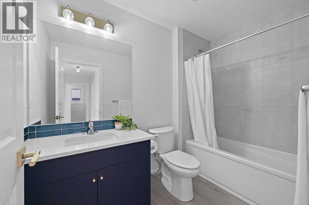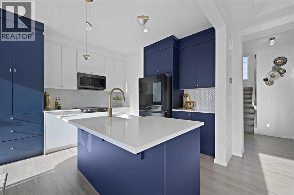 Welcome to this true 10/10 meticulously designed home with an amazing location rocking a SUNNY SOUTH facing yard with no rear neighbours behind and a WALKOUT BASEMENT that has been fully developed with a kitchenette and separate laundry to be that mortgage helper you've been searching for! This is not your cookie cutter home, this home is truly one of a kind with incredible upgrades throughout and it hosts downtown Calgary and mountain views! The bright main level layout feels like a luxury show home with an oversized quartz island, quartz countertops, upgraded two tone cabinets, a farm sink feature, upgraded stainless black steel appliance package, a well designed built in pantry/bar area, pot lights, upgraded light fixtures, oversized electric fireplace feature wall with built-in shelving, air conditioning, upgraded luxury vinyl plank flooring, half bath, "Next Step Option" (stairs to basement finished with railing), knockdown ceilings throughout, 9 ft ceiling on the main floor and a sunny OPEN CONCEPT layout that seamlessly ties the main floor together to feel like home. The upper level greets you with the large bonus room with its very own private balcony off the front of the home and perhaps the coolest room in the house is the kids play area that was developed off of the bonus room.The well laid out primary bedroom retreat hosts a walk-in closet and a 5 piece ensuite bathroom with a dual sink quartz vanity, a fully tiled shower with the upgraded glass option and a deep soaker tub (upgraded with the "Bath Oasis" builder option). The spacious 2nd and 3rd bedrooms upstairs are conveniently located next to the 2nd full bathroom (also with a quartz countertop) which is adjacent to the upstairs laundry room. The fully developed basement rocks a full kitchenette including its own separate laundry which is perfect for guests or renters - this is the mortgage helper that you've been dreaming of! This home is like-new, it's loaded with upgrades and it's the definition o f pride of home ownership. Don't lift a finger because this beautiful home with an amazing location is ready for its next owner and this property shows even better in person - come see for yourself! (id:6769)