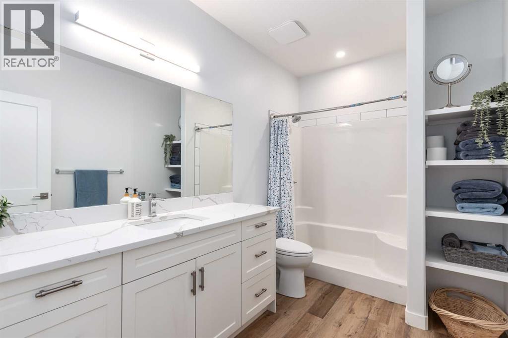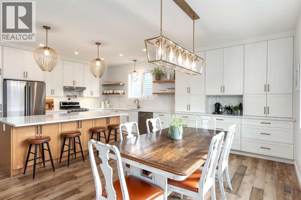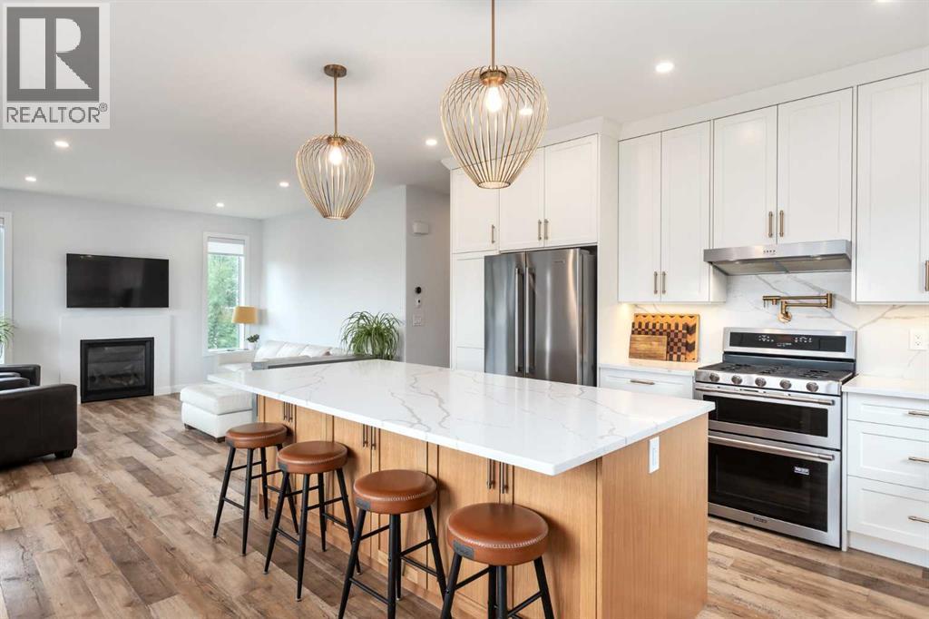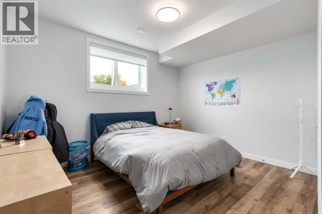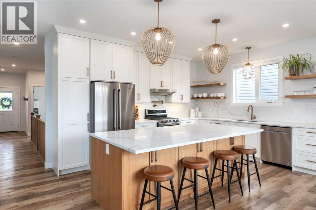 Five bedroom, 1400 sq ft high quality bungalow designed for a family. This home has an exceptional kitchen with beautiful high-end finishes, quartz counters and backsplash, large island, and an over-the-stove pot tap. The home is flooded with natural light and the dining room opens onto a private, covered upper deck. This level also has two bedrooms, including the spacious primary bedroom with a 5-piece ensuite and walk-in closet. Also on the main floor are the living room with cozy gas fireplace, 4-piece bathroom and a laundry room with built in cabinets. In the fully finished walk-out are 3 more bedrooms, 3-piece bathroom, and a 22' x 17’ family room. The yard has a large patio, is fully fenced, private, low maintenance, and has alley access. There is an oversized 32’ x 24’ garage that is insulated, painted, and has excellent lighting. Extras in this home include in-floor heating, central air conditioning, high efficiency boiler, and a water softener. Please click the multimedia tab for an interactive virtual 3D tour and floor plans. (id:6769)