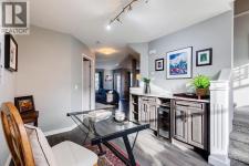 Luxury living in the desirable Quinterra complex on Calgary's posh west side! Enjoy a beautifully designed and landscaped townhome complex with a water feature that greets you as you enter and mature trees throughout. The complex is pet-friendly with plenty of visitor parking and your own attached garage! One of the rare RENOVATED units in this complex, you can enjoy a spectacular kitchen with granite counters, custom cabinetry, stainless steel appliances, under-cabinet lighting and an adjacent laundry/pantry with amazing storage! The dining area is next to the private balcony, perfect for morning coffees and evening BBQs! Enjoy winter nights cozied up in the living room with gas fireplace and views of the trees outside (not a fishbowl of other units like many newer complexes!). Sunny SE-facing den on this level is an amazing home office or could be set up as a lovely music room, yoga space, library, play area, second living room or more. Upstairs, the primary suite is stunning with walk-in closet, additional wall-to-wall wardrobe and luxurious 5-piece ensuite bath with an abundance of storage. Sunny 2nd bedroom is generously sized. Being an end unit gives windows on multiple sides of this home and there is great light throughout! The entry level has a coat closet and direct garage access and the full-length driveway is perfect for a second vehicle. Quick access to all of the shops and restaurants of 85 Street West like Mercato, Blanco Cantina, Una Pizza, brunch spots, sushi, Deville Coffee and much more. Drive downtown in just 15 easy minutes. Drive west to the mountains or enjoy access to nature at nearby Paskapoo Slopes or Edworthy Park. Please note the condo fees INCLUDE HEAT, WATER & SEWER (rare for townhomes) and the heating is in-floor on all levels so it's super cozy and efficient! (id:6769)