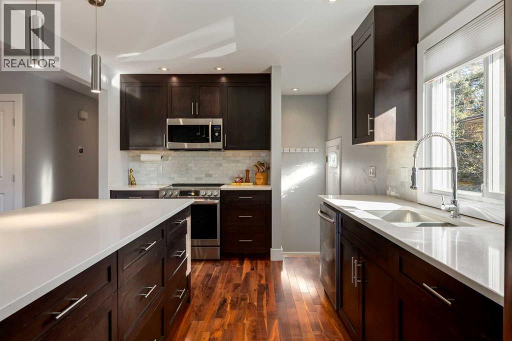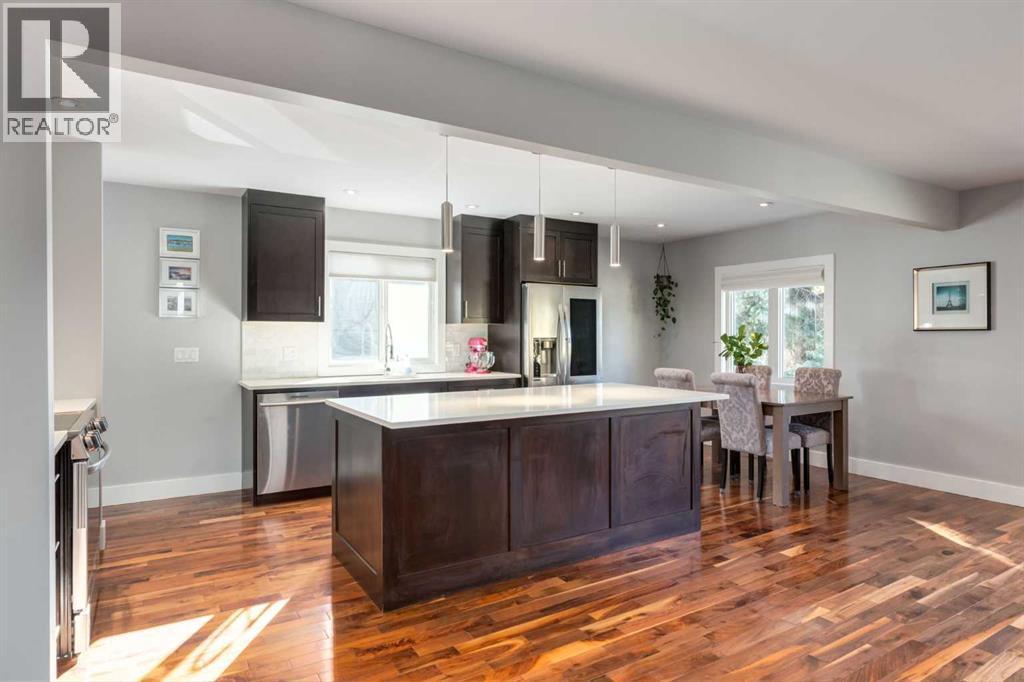 Beautifully Renovated Bungalow in the Heart of Desirable Collingwood. Welcome to this stunning 4-bedroom detached bungalow offering over 2100 sqft of total living space, perfectly situated in the highly sought-after community of Collingwood. Completely renovated, this home combines timeless charm with modern luxury. Step inside to discover a bright and spacious open-concept layout featuring walnut hardwood floors and quartz finishes throughout. The large kitchen is a chef’s dream, complete with stainless steel appliances, a massive island, and ample cabinetry—ideal for both entertaining and everyday living. The main bathroom showcases travertine floors and surround, and includes a large soaker tub/shower combination, creating a relaxing spa-like retreat. The fully developed basement expands your living space with a large bedroom, a 3-piece bathroom with travertine floors, built-in cabinets, and vanity, plus a spacious rec and flex room—perfect for family gatherings, a home gym, or an office setup. Enjoy the outdoors in your large backyard featuring a concrete patio, ideal for summer barbecues or quiet evenings. Located mid-block among detached single-family homes with a restrictive covenant ensuring the integrity of the neighborhood, this property offers peace and exclusivity. You’ll love the convenience of being walking distance to schools of all levels, the Calgary Winter Club, and just a minute’s walk to the 19th Street off-leash dog park. Plus, you’re close to the University of Calgary, SAIT, parks, playgrounds, shopping, golf courses, Confederation Park, and public transportation. This home truly has it all—a rare opportunity to own a beautifully updated bungalow with an attached garage in one of Calgary’s most desirable communities. Come see it today and fall in love with Collingwood living! (id:6769)