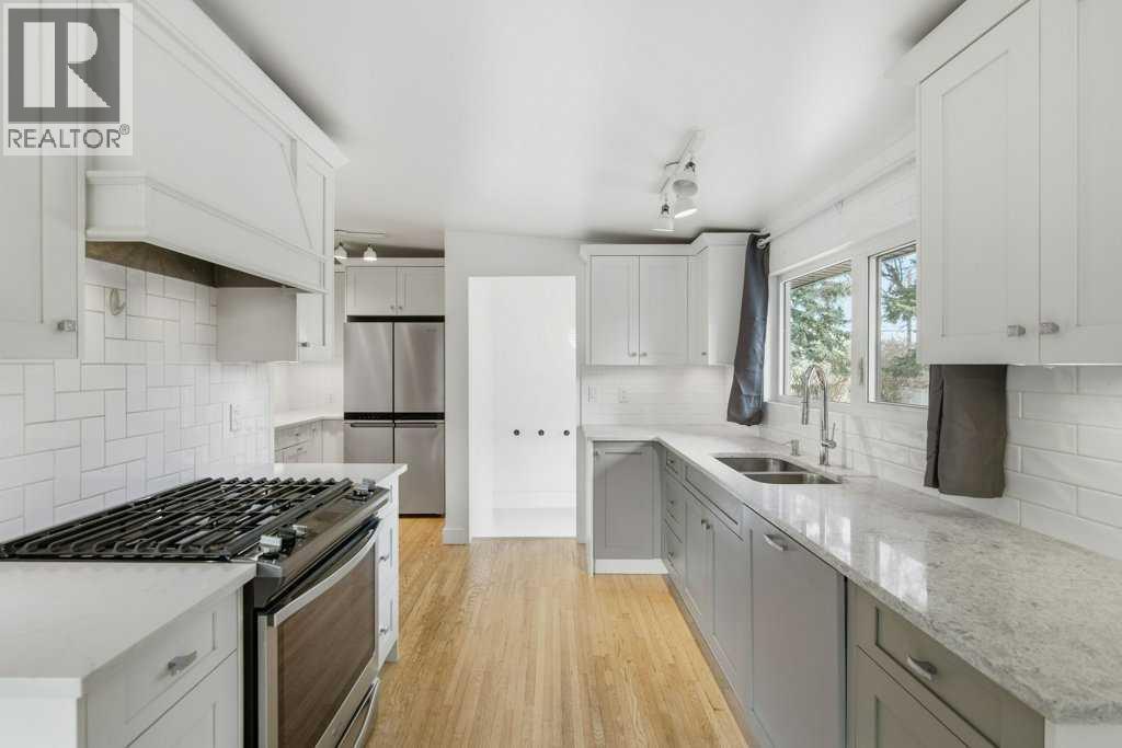 Detached Home plus a NEW legal one-bedroom Lane Suite with separate utilities, located above the Heated TRIPLE GARAGE. Plus Attached front garage with freshly renovated & updated 3 bed, 3 bath Bungalow on an Oversized 8800 sq ft pie-shaped lot in prestigious Lakeview. This property is like owning an acreage in the city. Backing onto a green space park with no neighbors behind for added privacy and tranquility. Inside, you'll find a bright and modern white kitchen, two skylights, and large basement windows that fill the lower level with natural light. The home has been thoughtfully upgraded with newly installed vinyl plank flooring, newer windows, tankless hot water, central air conditioning, newer roof and a comprehensive water softener and filtration system. The main bathroom displays mosaic tile flooring and a large tiled walk-in shower. Fully developed basement contains 2 bathrooms including a spa inspired ensuite with a Claw Tub and Large walk-in shower. The garage suite is complete with STEAM SHOWER, in-suite laundry, quartz counters, stainless appliances and 2 bathrooms—perfect for rental income or extended family. This move-in-ready home combines style, comfort, and income potential in one of the city’s most desirable neighborhoods. Walking distance to some of Calgary's finest schools & shopping. Walk to North Glenmore Park and walk/ride the Weaslehead pathways. Just a quick 12 min commute to downtown and conveniently located near Stoney Trail, for those quick escapes to the mountains. (id:6769)