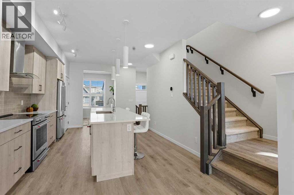 Welcome to 1075 Mahogany Boulevard SE, a pristine semi-detached home with nearly 1,700 sq. ft. of above-grade living space and a spacious basement offering huge future potential. Located in the sought-after lake community of Mahogany, this property blends contemporary design with family-friendly functionality. The main floor features a bright, OPEN-CONCEPT LAYOUT where expansive windows fill the living, dining, and kitchen areas with natural light. The CHEF-INSPIRED KITCHEN showcases FULL-HEIGHT CABINETRY TO THE CEILING, ELEGANT QUARTZ COUNTERTOPS, UPGRADED STAINLESS APPLIANCES, a SEPARATE HOOD FAN, BUILT-IN MICROWAVE, and a BUILT-IN WATER FILTER at the sink. A VERSATILE DEN/BEDROOM on this level adds flexibility for a HOME OFFICE, GUEST ROOM, or PLAY SPACE. Upstairs, unwind in the PRIMARY SUITE with a STYLISH 4-PIECE ENSUITE, while TWO ADDITIONAL SPACIOUS BEDROOMS share a SLEEK 3-PIECE MAIN BATH. A BONUS ROOM and UPPER-LEVEL LAUNDRY provide extra convenience for busy families. The basement offers 9-FT CEILINGS, TWO LARGE WINDOWS, and ROUGH-IN PLUMBING for a future bathroom, creating endless possibilities for a SUITE (subject to approvals), GYM, MEDIA ROOM, or EXTRA LIVING SPACE. A REAR DECK extends the living area outdoors. Enjoy year-round recreation with Mahogany’s LAKE, BEACHES, PARKS, TRAILS, SHOPPING, DINING, and SCHOOLS all close by. Move-in ready and impeccably maintained, this home delivers SPACE, STYLE, and a PRIME LOCATION, schedule your showing today. (id:6769)