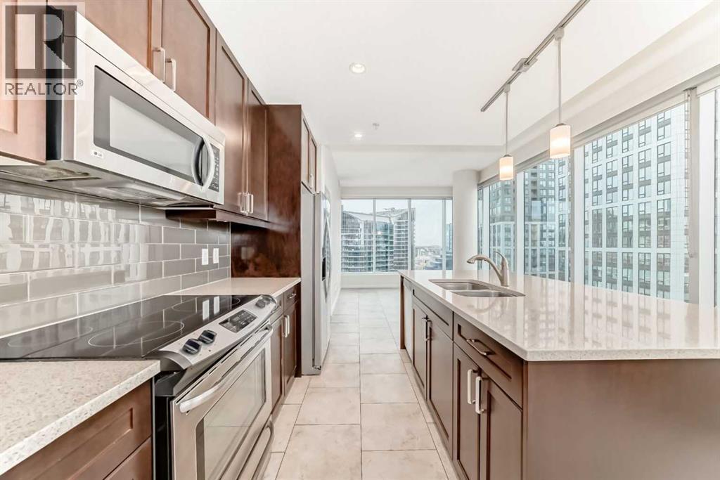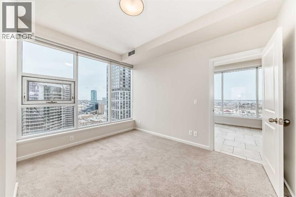 Click brochure link for more details. Experience the best of downtown living in this bright and stylish 22nd-floor corner unit at NuEra. With floor-to-ceiling windows and 9-foot ceilings, this home is filled with natural light and offers panoramic views that stretch for miles — including a front-row seat to the Stampede Grandstand show and fireworks, right from your bed!The open-concept kitchen is perfect for both everyday living and entertaining, featuring custom cabinetry, granite countertops, stainless steel appliances, and a large island that flows effortlessly into the living and dining spaces.The primary bedroom is a private retreat with a walk-in closet and a spa-inspired ensuite complete with a soaking tub. The second bedroom is located on the opposite side of the unit for added privacy and enjoys its own spectacular views with easy access to a modern 3-piece bathroom.Additional features include in-suite laundry, secure underground parking, a storage locker, designated bike storage, and visitor parking. Residents also enjoy access to premium building amenities, including a fully equipped fitness centre and professional concierge service.Located in the heart of Calgary’s vibrant Victoria Park, you’re just steps from 17th Avenue, the C-Train, Sunterra Market, and some of the city’s best dining, shopping, and entertainment.This is luxury urban living at its finest — a rare opportunity to own a spectacular home with unmatched views and convenience. (id:6769)