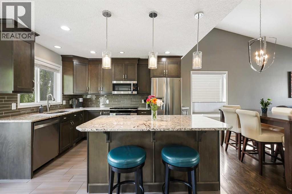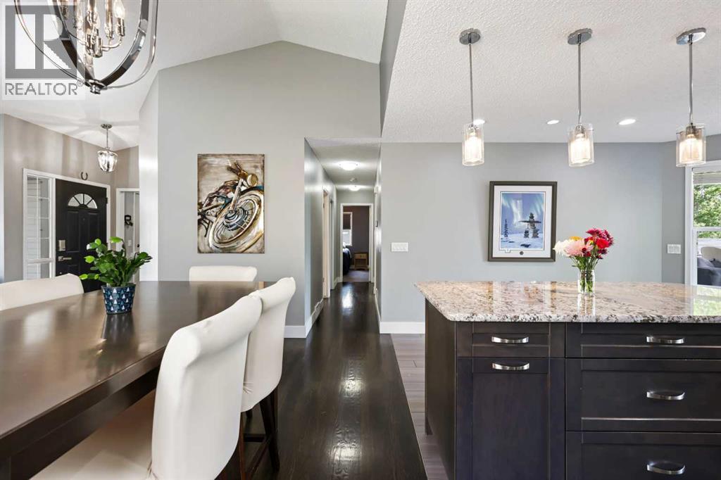 Welcome to the sought-after community of Strathmore Lakes. This immaculately kept bungalow is tucked away on a quiet street and offers just over 2,500 sq ft of developed living space. With 5 bedrooms and 3 bathrooms, it’s the perfect home for families or retirees seeking comfort and space. The open-concept layout features a bright, updated kitchen with modern finishes and direct access to a composite deck—ideal for summer BBQs and outdoor entertaining. The main floor also includes a spacious living and dining area. The primary suite offers a large walk-in closet and a private 3-piece ensuite, providing a quiet retreat. Two additional bedrooms and a renovated 4-piece bathroom complete the main level. Downstairs, you’ll find a generous family room, two more bedrooms, another 4-piece bathroom, and plenty of storage throughout. The south-facing backyard is beautiful and fully landscaped, featuring low-maintenance composite decking, a powered shed, and direct access to a back lane—offering both privacy and convenience. Central A/C keeps the home cool during warm summer days. The double garage has been freshly painted and includes built-in storage. Meticulously maintained and clearly cared for, this home shows true pride of ownership. Located close to parks and within walking distance to two elementary schools, it offers comfort, convenience, and lasting value. This home has everything you need to enjoy the best of small-town living with all the amenities. Take the next step toward making this beautiful home yours—schedule a viewing today! (id:6769)