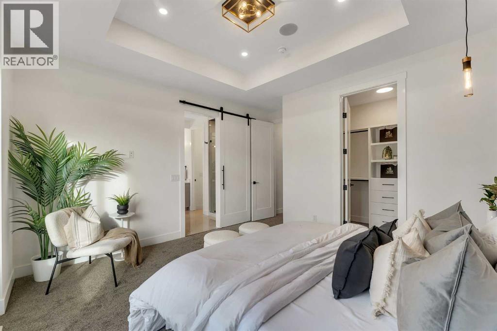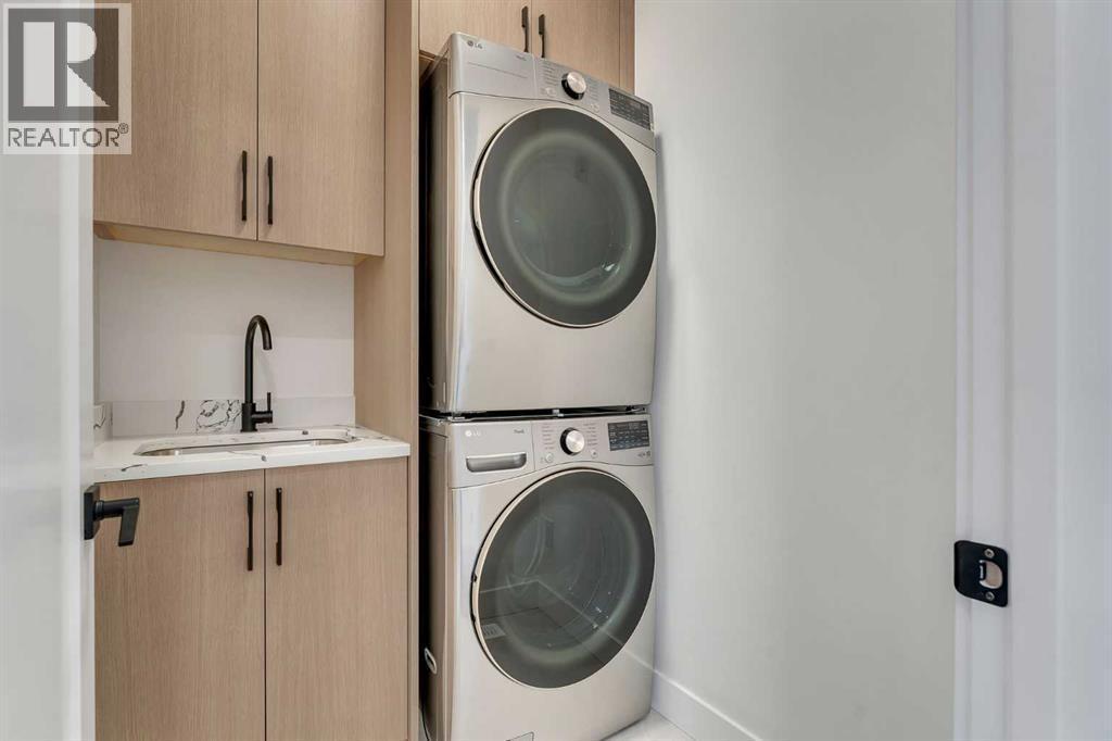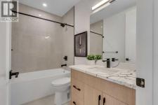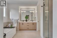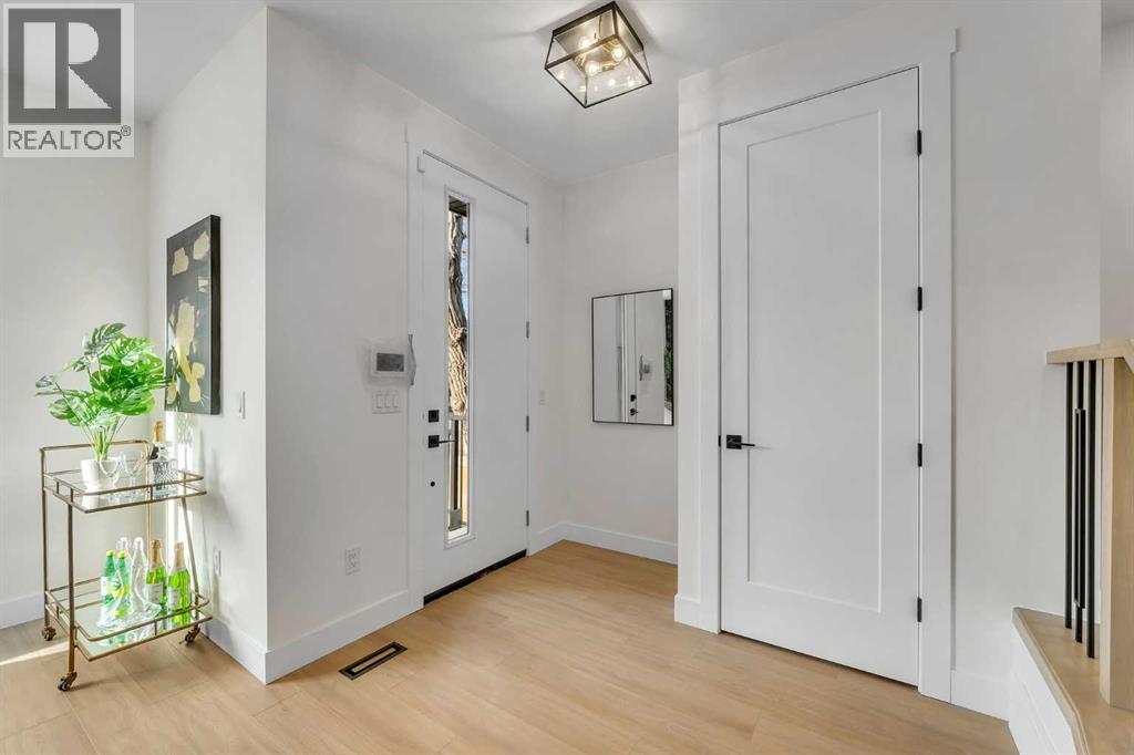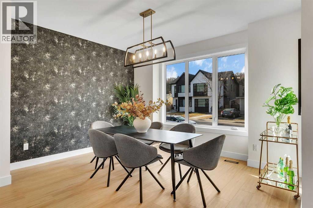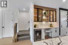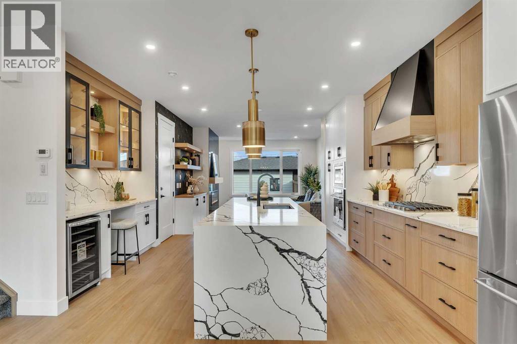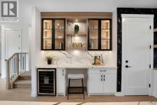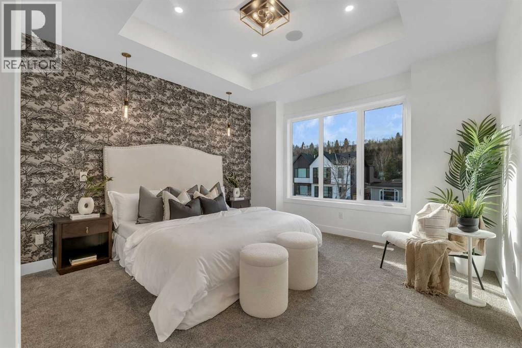 Discover the epitome of modern living in this impeccably located home! Nestled on a quiet street, steps from Bowness Park and next to a school, this 5-bedroom, 3.5-bath residence offers over 2800 sqft of luxury. The home showcases countless upgrades, including a CUSTOM UPGRADED QUARTZ BACKSPLASH throughout. The gourmet kitchen features a stainless steel KitchenAid package with built-in wall oven & microwave, double-door fridge with waterline, dishwasher, custom canopy hood fan, plus a large island with custom slat design and quartz waterfall, pantry, pull-outs, quartz counters, under-cabinet lighting, and custom cabinetry. The main floor also includes a formal dining area, living room with custom built-ins & fireplace, and a designer mudroom with bench & storage. Upstairs, you’ll find two spacious bedrooms, a laundry room with sink, a full bath, a bonus room with 10ft tray ceiling, and a luxurious master retreat with 10ft tray ceiling, a vast custom walk-in closet, and a spa-inspired ensuite featuring a freestanding tub, double vanity, and custom-tiled shower. The fully developed LEGAL basement suite offers spacious open-concept living with a bright living room enhanced by a large window, a dining area, and a custom kitchen complete with quartz backsplash, microwave hoodfan, breakfast bar, and ample counter space. It also features two large bedrooms, stacked laundry, and a full bathroom with a tiled surround shower. Exterior highlights include custom concrete steps, walkways, and patio, full landscaping, new fencing, BBQ gasline, and a private backyard area designed for basement tenants to enjoy. Additional features: 9ft ceilings on all levels, 8ft doors, flat painted ceilings (main & upper), knockdown basement ceilings, smart home wiring, upgraded lighting, custom faucets, central vac rough-in, AC rough-in, and CAT 5 wiring. A true blend of craftsmanship and intelligent design, this home is a must-see. Don’t miss this opportunity—next door unit 8718 is also availab le! (id:6769)