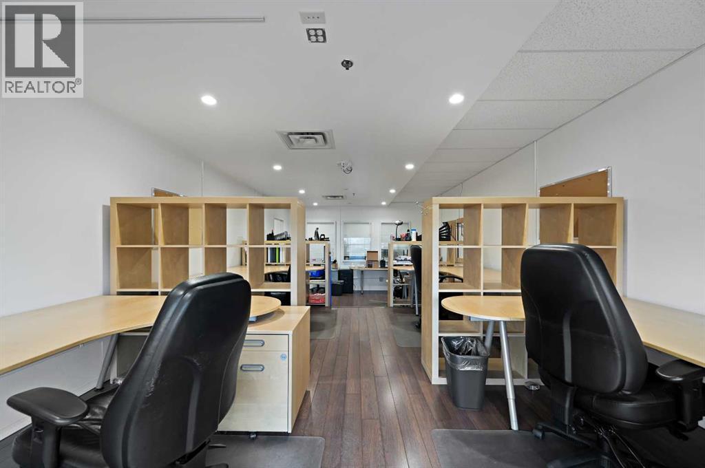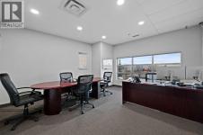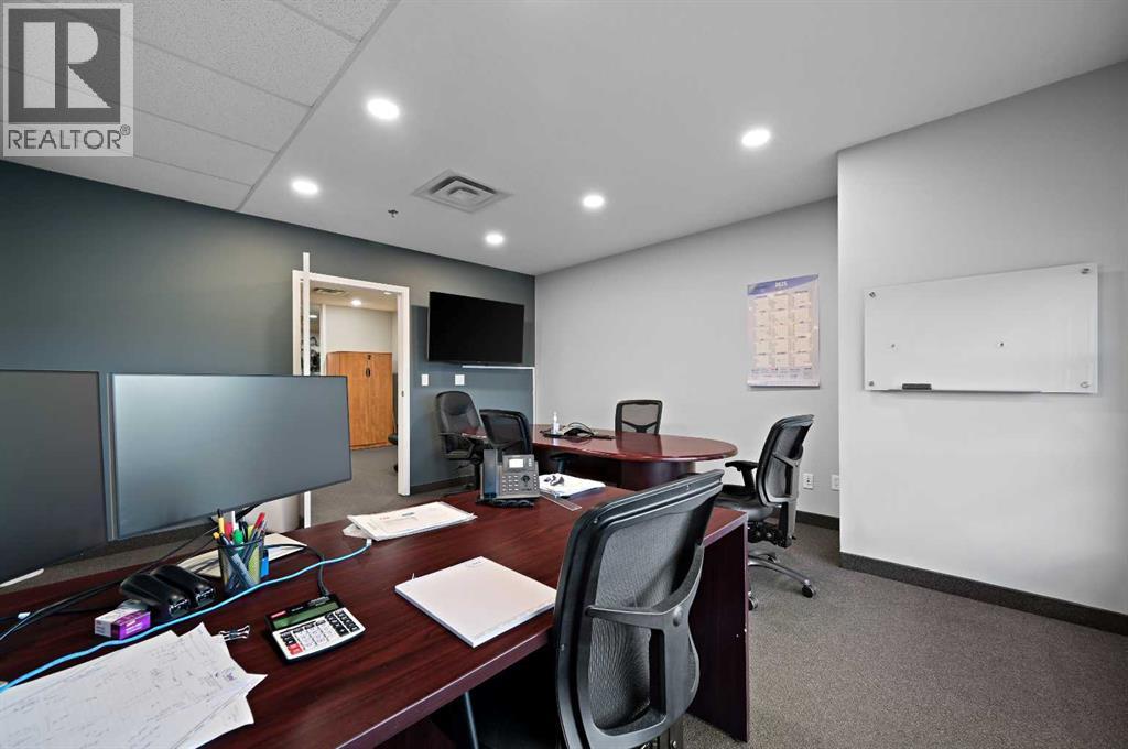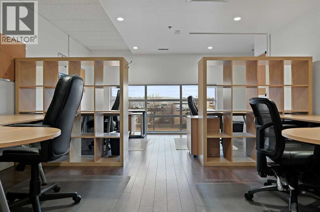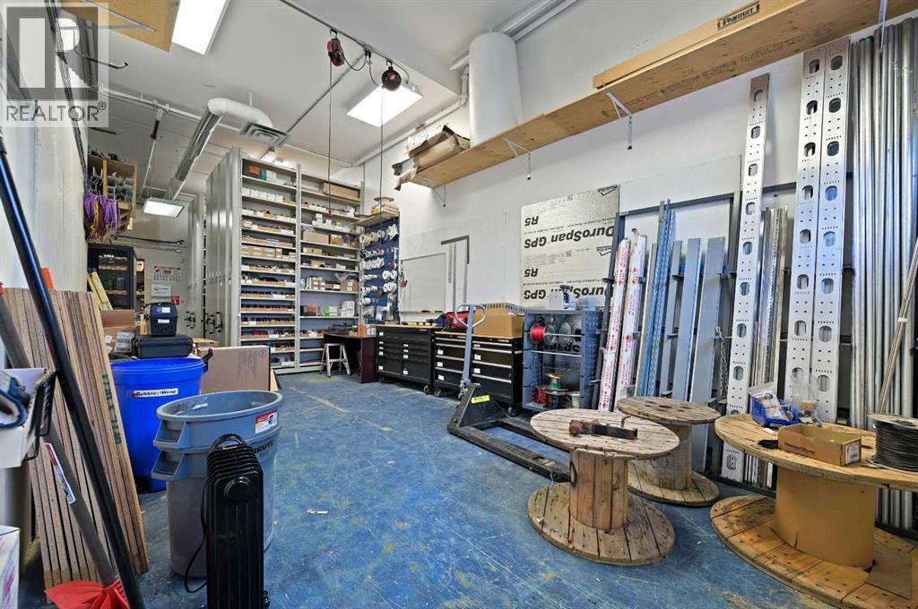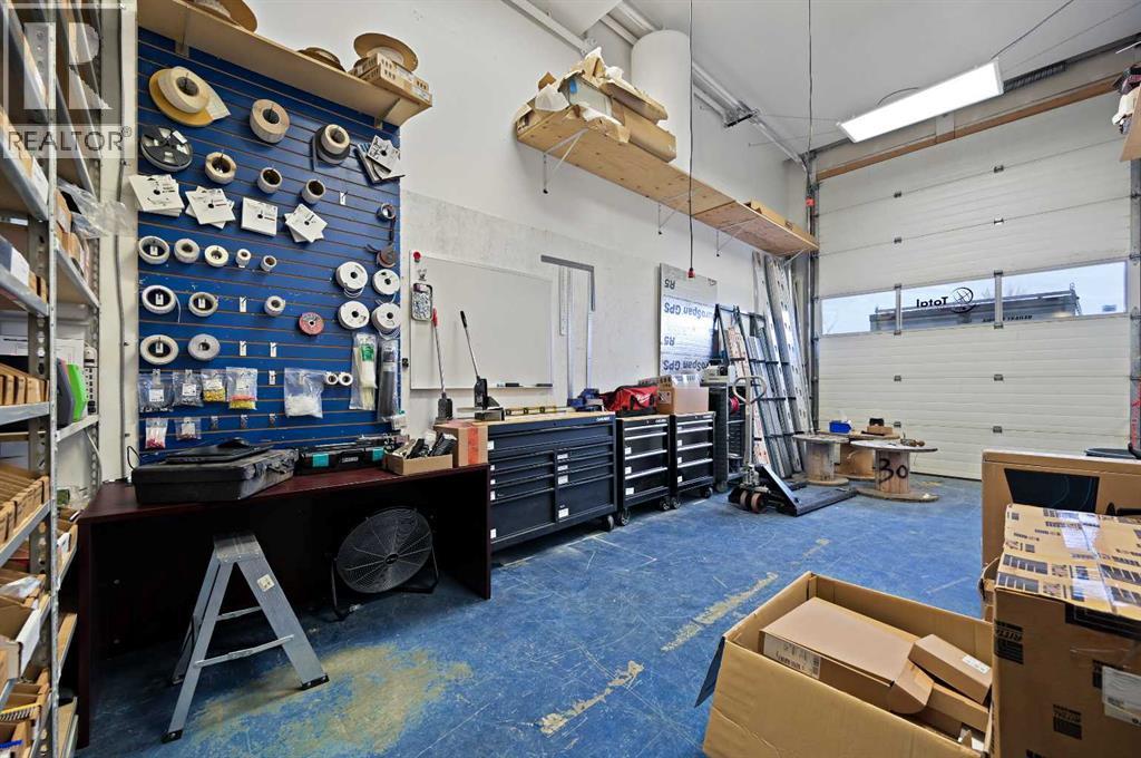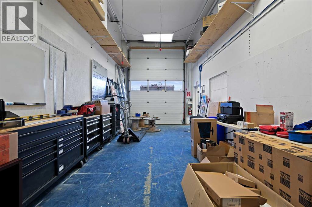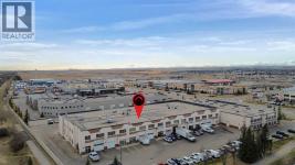 Commercial condos of this type are rare to find on the market in Airdrie. The unit is within the Kingsview Plaza, with excellent access to 40th Ave, Deerfoot Trail, Kingsview Market and Yankee Valley Blvd. The zoning is IB-1 for a variety of businesses, including business services, some retail and industrial services, animal services, microbrewery, health care and more. The condo includes 3,110 sq. ft. on 2 levels, consisting of a 570 sq. ft. shop / warehouse, reception, office, kitchen, bathroom and storage on the main level. The shop has 15 ft. clear height. The air conditioned second level is well designed offices and open area perfect for training plus a second bathroom. Loading is via a grade level 10 x 14 overhead door plus office entrance. Don't need both levels? - the second level can be easily secured from the main level for rental income. With assigned parking at the door and plenty of scramble parking, there is room for everyone. The rolling shelving system in the shop is available as a separate sale. (id:6769)