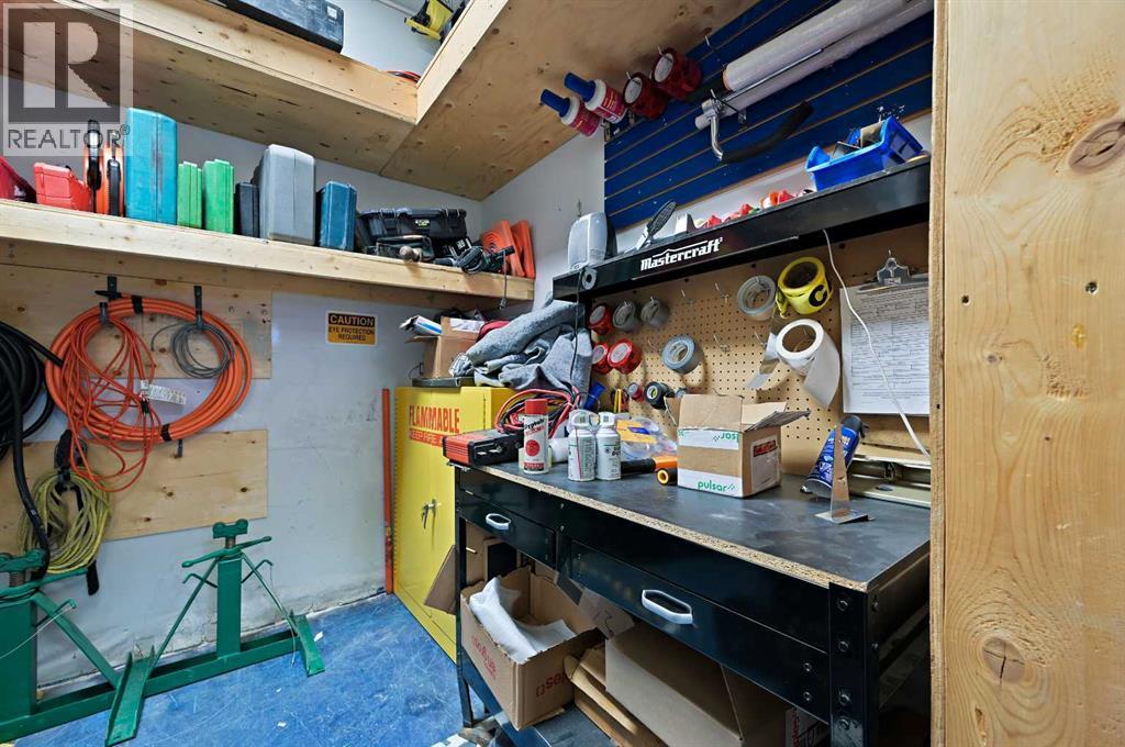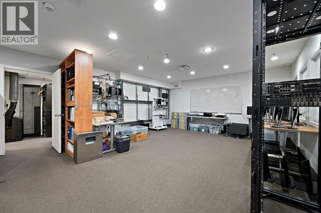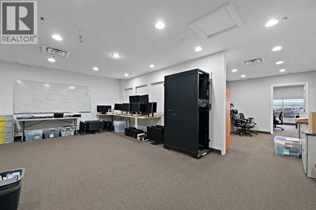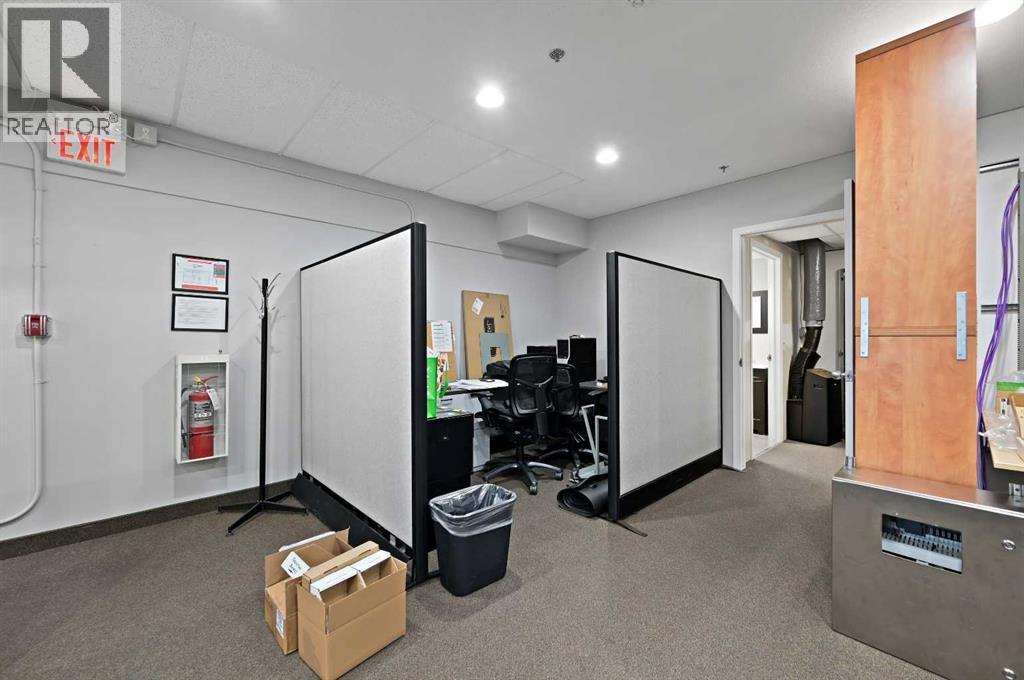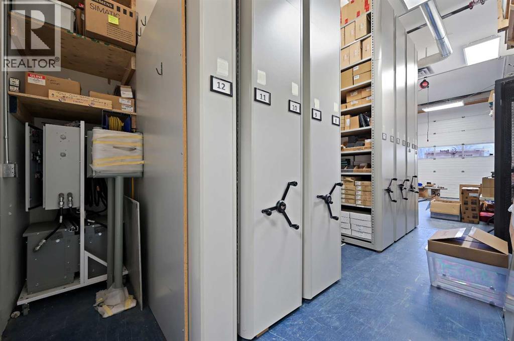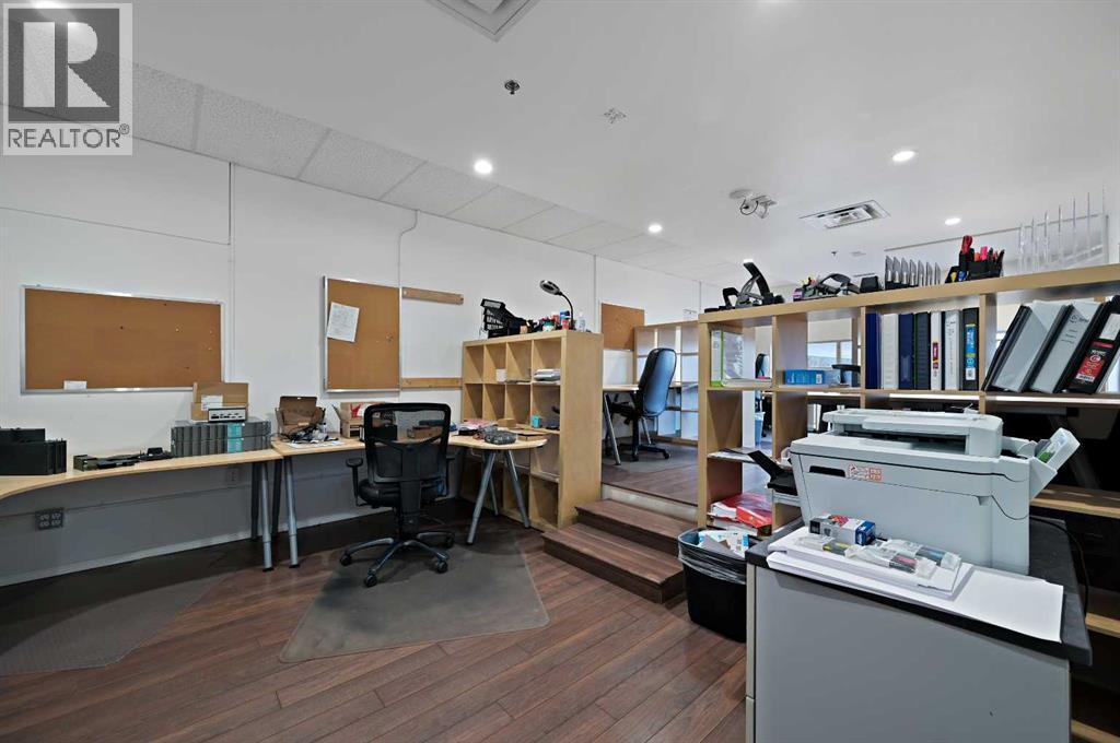 Commercial condos of this type are rare to find on the market in Airdrie. The unit is within the Kingsview Plaza, with excellent access to 40th Ave, Deerfoot Trail, Kingsview Market and Yankee Valley Blvd. The zoning is IB-1 for a variety of businesses, including business services, some retail and industrial services, animal services, microbrewery, health care and more. The condo includes 3,110 sq. ft. on 2 levels, consisting of a 570 sq. ft. shop / warehouse, reception, office, kitchen, bathroom and storage on the main level. The shop has 15 ft. clear height. The air conditioned second level is well designed offices and open area perfect for training plus a second bathroom. Loading is via a grade level 10 x 14 overhead door plus office entrance. Don't need both levels? - the second level can be easily secured from the main level for rental income. With assigned parking at the door and plenty of scramble parking, there is room for everyone. The rolling shelving system in the shop is available as a separate sale. (id:6769)