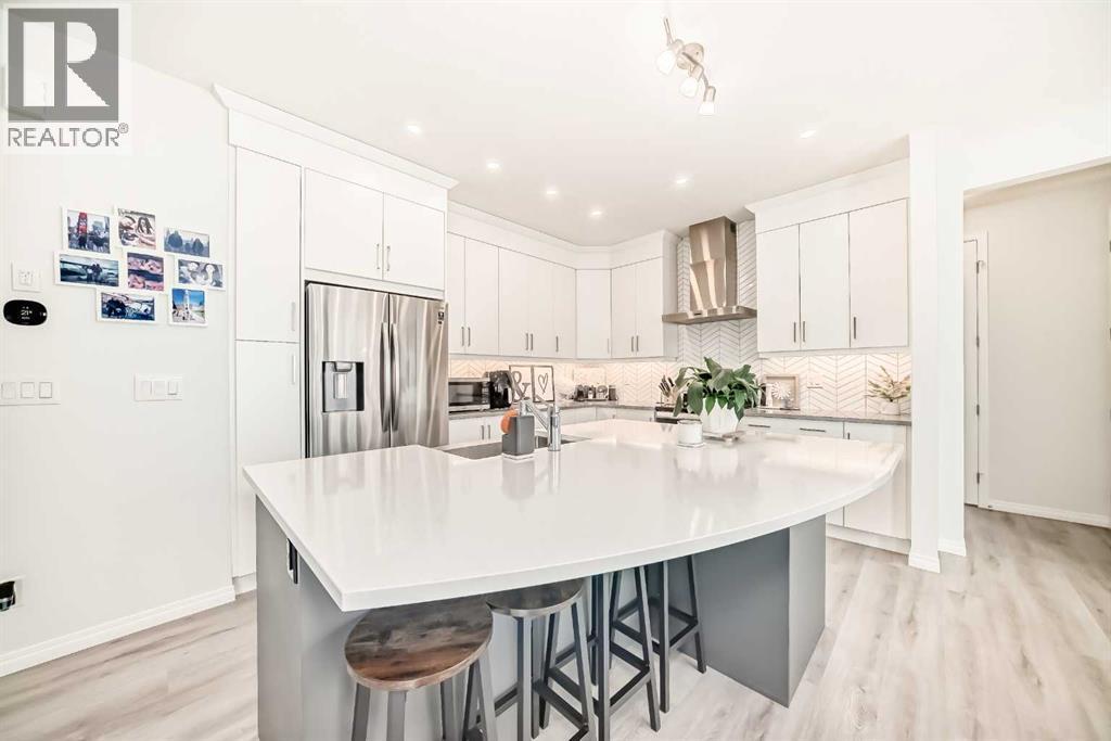 An Immaculate condition 2,243 sq.ft 2-storey single family detached home sitting on a large 44' W Lot in beautiful Carrington NW. The main floor and upper floor both has 9’ ceiling, neutral colours, a beautiful upgraded gourmet kitchen with quartz countertops and a massive island. It also come with a nice size office area with huge windows! Gorgeous luxury vinyl flooring flows throughout the main floor. The second floor features a master bedroom with attached 5 piece upgraded ensuite featuring quarts countertops, free standing tub, shower with a bench and a walk-in closet. The house also has 2 more bedrooms, a full bathroom with quartz countertops, laundry room and a big bonus room. Basement is unfinished and has a bathroom rough-in. Enjoy access to amenities including planned schools, an environmental reserve, and recreational facilities, sure to complement your lifestyle! (id:6769)