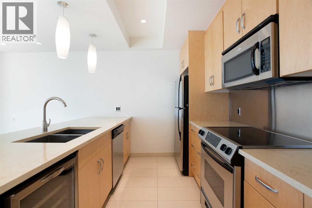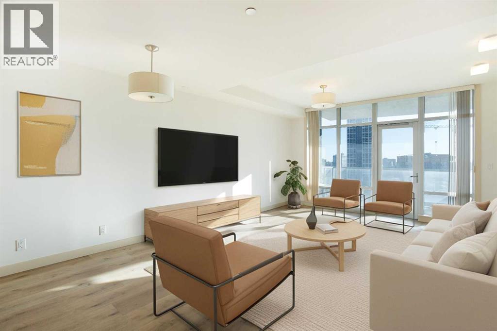 This stunning condo combines modern luxury with exceptional design, featuring brand-new flooring and fresh paint throughout. The open-concept floor plan showcases trendy wide plank flooring and a gorgeous kitchen equipped with quartz countertops, stainless steel appliances and a large breakfast bar perfect for entertaining. Floor-to-ceiling windows flood the space with natural light and offer unobstructed views. Step onto one of the largest and sunniest private balconies in the building to enjoy Calgary's vibrant skyline.The spa-like master retreat comfortably accommodates a king-sized bed, two nightstands, and a large TV. It features custom California closets and a lavish 5-piece ensuite with dual sinks, a fully tiled shower, a soaker tub, and convenient front-loading washer and dryer. The condo also includes a guest bathroom for added convenience.An additional highlight includes a titled underground parking stall. The upscale Castello building provides exceptional amenities, including a concierge, a fully equipped gym, a social room, a guest suite, a car wash bay, and more.Perfectly located steps away from downtown, shopping, and Calgary's vibrant nightlife, this property offers the ultimate urban lifestyle. Don’t miss this opportunity to own a luxury condo in one of Calgary’s hottest locations! (id:6769)