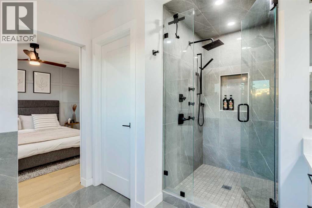 Check out the virtual tour - https://youriguide.com/4528_vegas_rd_nw_calgary_ab/ LUXURY RENOVATION | 5 BEDS + 3 BATHS | 4-LEVEL SPLIT | 2,600+ SQ FT OF LIVING SPACE | DOUBLE GARAGE | FACES GREEN SPACEThis completely redesigned and modernized home offers a perfect blend of functionality, style, and luxury in the highly desirable community of Varsity. Ideally located just minutes from the University of Calgary, Market Mall, University District, and the LRT, it provides exceptional convenience for both families and professionals. Rebuilt from the studs up in 2022 the renovation met 2022 building codes with new plumbing, electrical, insulation, heating, and exterior were installed ensuring quality and longevity for years to come.Inside, the main floor showcases an open-concept layout with engineered hardwood throughout and large windows that flood the space with natural light. The contemporary kitchen is a chef’s dream, featuring custom shaker cabinetry, a generous pantry, subway tile backsplash, and a premium stainless steel appliance package that includes a French door refrigerator, gas cooktop, built-in oven and microwave. A spacious quartz-topped island provides extra prep space, breakfast bar seating, and a stylish focal point for gatherings.The inviting living area centers around an elegant inset gas fireplace with a dark tile surround and built-in media unit, creating the perfect place to relax. The adjacent dining area opens through large sliding doors to a large deck and interlocking brick patio—an ideal setting for outdoor dining and entertaining.Upstairs, you’ll find continued hardwood flooring and a stunning primary suite designed for comfort and sophistication. The room features a soft grey accent wall, large window, custom walk-in closet, and a beautiful barn door that leads to the luxurious spa inspired 5-piece ensuite. The ensuite includes a modern double-sink vanity, freestanding soaker tub, and a glass-enclosed shower with. A secondary bedroo m overlooks the front yard and green space across the street, while a nearby 4-piece bathroom offers matching quartz counters with a tiled tub & shower combo.The lower level adds even more functional living space with engineered hardwood, three additional bedrooms, a full bathroom, and a stylish mudroom featuring built-in storage and direct backyard access. One level down, a bright and expansive rec room awaits—complete with plush carpeting, a custom media wall, and a wet bar with built-in cabinetry and a beverage fridge perfect for watching the game or movie nights with the family.Outside, the private backyard is fully fenced and opens directly onto Varsity Acres Park—perfect for kids, pets, and outdoor activities. With its prime location, modern updates, and timeless design, this exceptional Varsity home offers the perfect balance of luxury, comfort, and convenience. (id:6769)