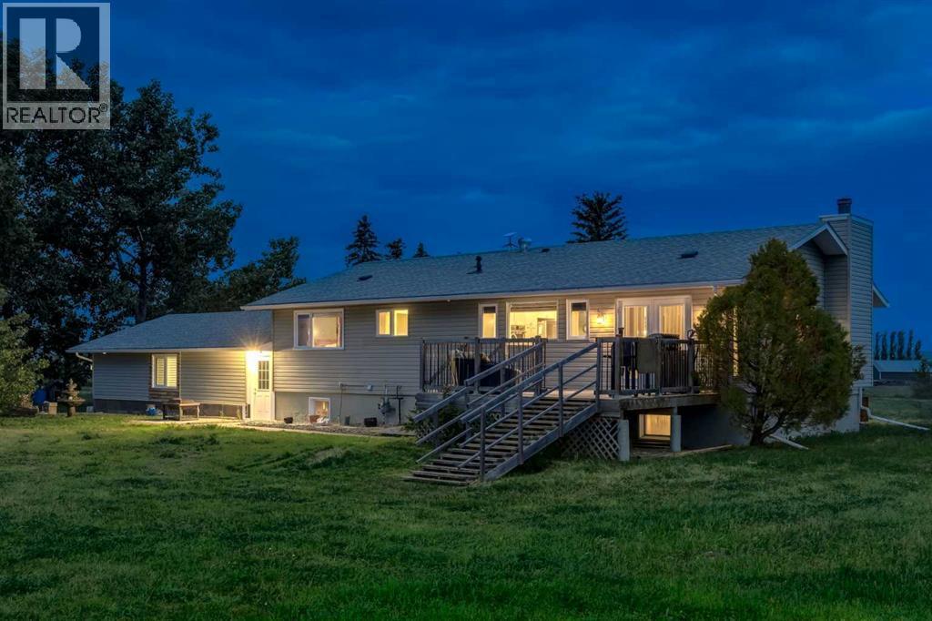 NEED EXTRA SPACE? BUSINESS? SHOP? LAND? HOUSE? — 3 IN 1, YOU GET IT ALL HERE!Experience the best of both worlds — acreage living with city convenience! Situated on 4.5 gently rolling acres with panoramic foothills views, this property offers a fully renovated home and an exceptional multi-level shop, providing the ultimate setup for space, flexibility, and opportunity — just 15 minutes from both Calgary and Okotoks.The open-concept main floor is drenched in natural light, with large windows capturing sweeping rural vistas. The designer kitchen, renovated in 2018, showcases custom cabinetry, granite counters, a large sit-up island, and premium stainless-steel appliances — perfect for entertaining or family gatherings. The main floor hosts two generous bedrooms, including a primary retreat with a luxurious five-piece ensuite featuring a freestanding tub, double sinks, and glass shower. A former third bedroom has been converted into a dream walk-in closet with window — an elegant dressing sanctuary. Two additional bedrooms on the lower level make this layout ideal for families, guests, or multigenerational living.Extensive upgrades include high-end vinyl plank flooring throughout, fresh designer paint, motorized blinds, updated windows, a new roof, new septic system (2018), and a new well (2025). The home is equipped with energy-efficient in-floor heating on both levels, powered by a gas boiler system, ensuring low utility costs and year-round comfort.The former detached double garage has been professionally converted into a heated workshop and office area, offering a perfect setup for a home-based business, studio, or creative workspace, with no vehicle parking inside.The crown jewel of this property is the oversized, multi-level shop. Designed for versatility and future potential, it features steel post construction, 200-amp electrical service, and rough-in plumbing and heating. A 14-foot drive-through door provides easy access for RVs, boats, or commercial vehi cles. The heated main bay offers abundant room for projects or storage, while the second level is ready for a potential suite (subject to municipal approval) complete with a private balcony and breathtaking mountain views. The third level is currently used as a gym but could easily be transformed into a theatre room, recreation area, or additional storage space.Perfect for entrepreneurs, contractors, mechanics, collectors, or anyone seeking a true live/work lifestyle, this remarkable property combines acreage privacy with city proximity. Acreage living meets modern comfort — the possibilities are endless here. Book your private showing today and discover the lifestyle you’ve been waiting for! (id:6769)