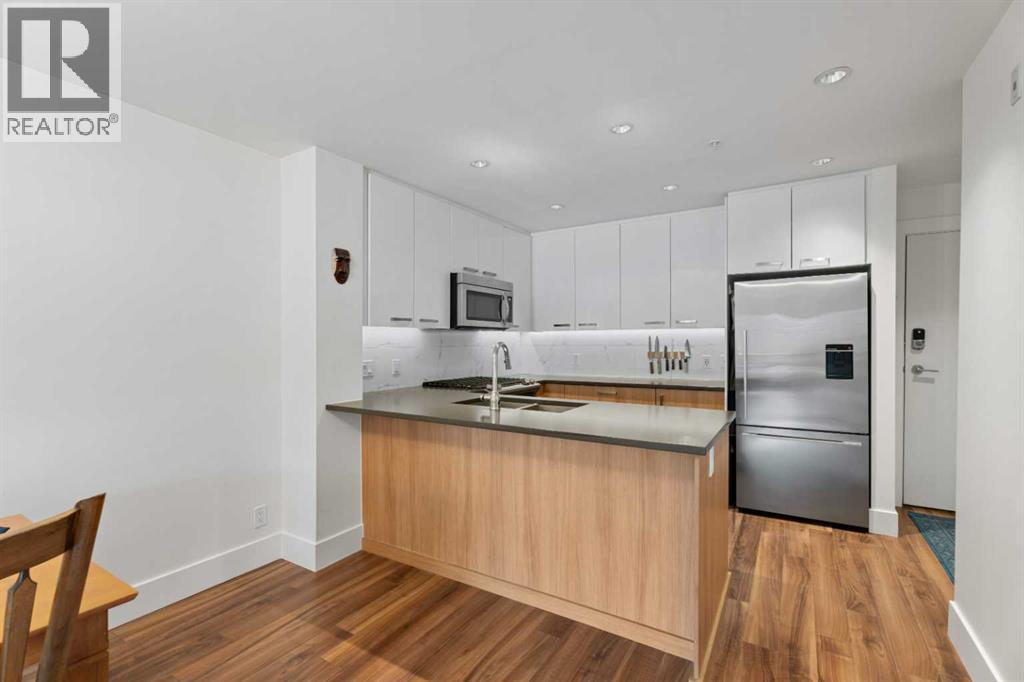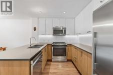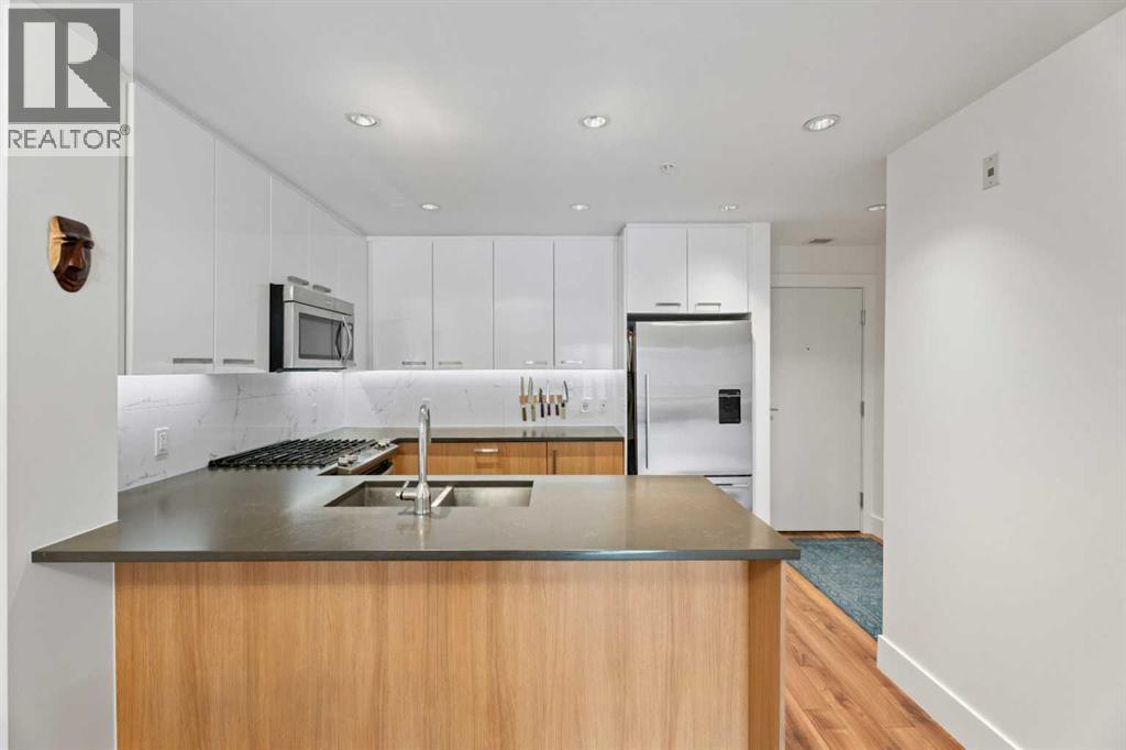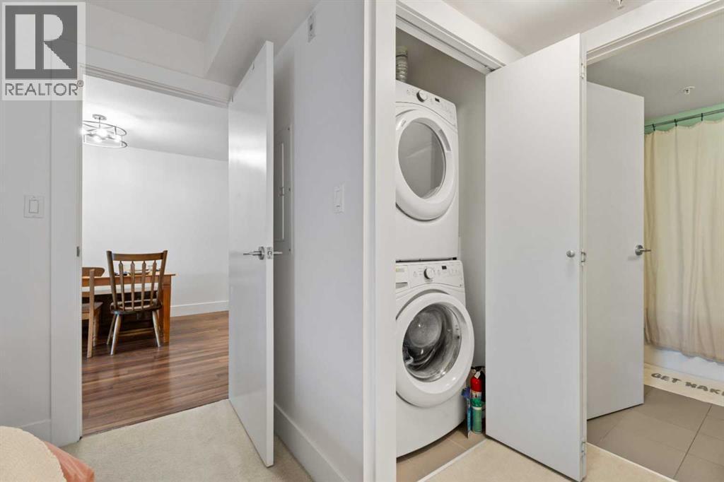 Welcome to this beautiful building located in the highly desirable community of Bridgeland. This west facing one-bedroom, one-bathroom unit offers exceptional convenience with close proximity to Bridgeland’s vibrant shops, Bow River pathways, and the downtown core. Upon entering, you’ll immediately notice the spacious layout and a kitchen that is large with tons of storage. It features upgraded stainless steel appliances, including a gas range, making it perfect for cooking enthusiasts. The larger dining area flows seamlessly into the bright living room, creating an open and inviting atmosphere flowing natural light from front to back. One of the standout features of this home is the exceptionally large and secure patio, one of the biggest in the building, offering partial city views and ample space for entertaining or relaxing outdoors. The generously sized bedroom provides enough room for am additional cozy sitting area or dedicated office space. The bathroom includes a convenient ensuite-style door, allowing access from both the bedroom and main living area for added comfort and functionality. Additional features include in-suite laundry, titled underground parking, and a private storage locker. The building itself offers fantastic amenities such as a resident gym, bike storage, and secure entry throughout. This is an opportunity you don’t want to miss. Perfect for first-time home buyers, commuters, and investors, this unit is ideally situated for professionals seeking modern living in one of Calgary’s most attractive neighborhoods. (id:6769)