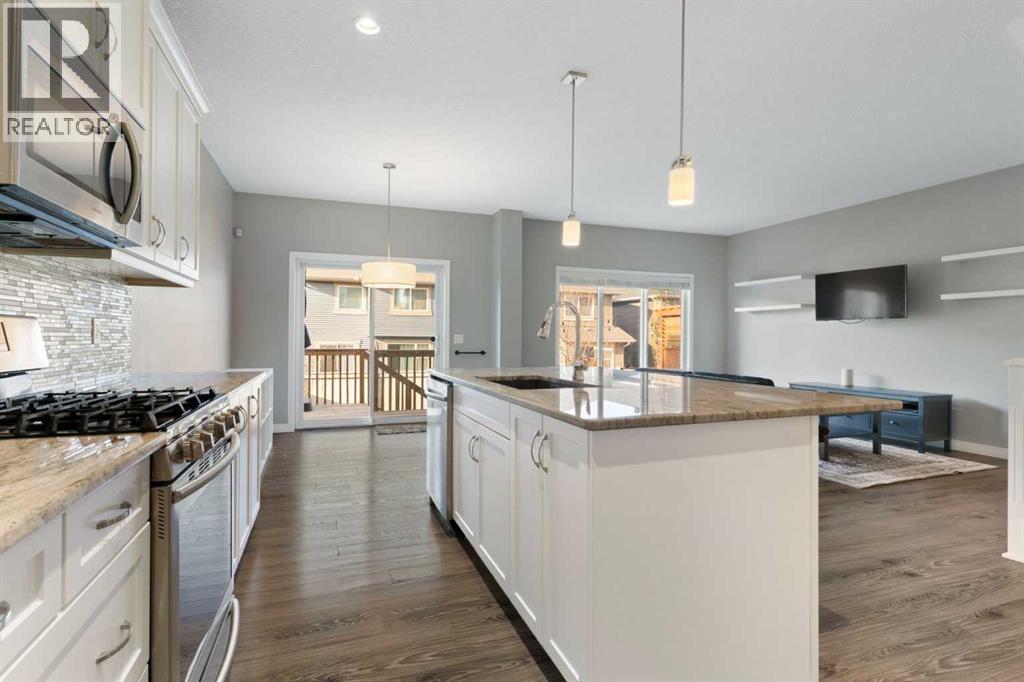 **MOVE IN READY for the HOLIDAYS, LIKE NEW** Welcome to your new home in the heart of King's Heights, one of Airdrie’s desirable family friendly communities! Come Fall in love with this stunning, fully finished detached home with almost 2,500 sq ft of living square feet of well-maintained living and a fully developed basement. As you step through the front door you are greeted with lots of natural light and laminate flooring throughout. The living room and adjourning dining room provide an inviting open layout that look onto the back deck and fully fenced yard. At the heart of the home is the well-appointed modern WHITE kitchen, featuring stainless steel appliances, gleaming GRANITE countertops, a large central island, tile backsplash, ample cabinetry and walk-in pantry. The home features three well-sized bedrooms, including a primary retreat with a spacious walk-in closet and a full 5-piece ensuite bathroom, boasting dual sinks, a separate shower and a soaker tub . The upper level includes a generous bonus room which is ideal for a playroom, visiting guest, extended family or a home office. Additionally, for your convenience the laundry room is located upstairs with extra storage space. Relax and entertain in the spacious fully finished basement, great for recreation space or media room, well equipped with built-in speakers and a wet bar with a beverage cooler, fantastic for family movie/game nights, out-of-town guests or entertaining friends. Outdoor backyard offers lots of room for family BBQs, playtime, extra storage and camp fires. In the well-planned community of King’s Heights you will have access to nearby schools, parks, ponds, walking paths and an amphitheatre while also having the convenience of Kingsview Market shopping centre only steps away. This home is a perfect balance of style and comfort. Don’t wait, schedule your private viewing today to experience the ultimate living in Airdrie. (id:6769)