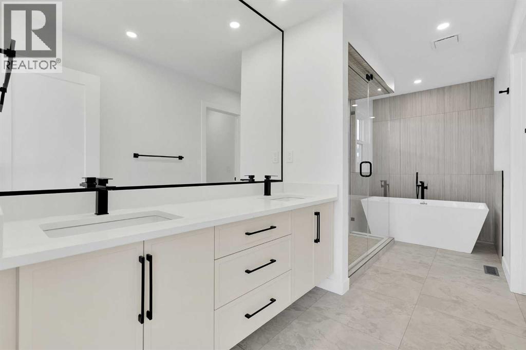 Discover luxury living in the beautiful community of Rivercrest in Cochrane, overlooking the Bow River! This brand-new home perfectly combines Elegance and Functionality. Featuring an open concept floor plan, boasting FOUR spacious bedrooms and three and a half bathrooms. As you step into the main foyer, you are greeted by a bright, open-to-above living area. The chef's kitchen is a highlight, equipped with gourmet appliances, a gas cooktop, a generous island, ample prep space, and a large pantry. The expansive living room features large windows and a cozy gas fireplace, creating a warm and inviting atmosphere. Adjacent to the living area is an elegant dining space that seamlessly connects to a rear deck—perfect for entertaining and enjoying summer evenings. The main floor also includes a convenient two-piece powder room and a custom-built mudroom adjacent to the double-car garage. On the second floor, you will find TWO primary suites. One suite features a spacious walk-in closet and a luxurious five-piece ensuite with a double vanity, a soaker tub, and a walk-in rain shower. The second suite includes a walk-in closet and a three-piece ensuite with a rain shower system. Additionally, there are two well-sized bedrooms that share a four-piece common bathroom, complemented by a linen closet for added convenience. A bright bonus room on this level provides flexible space ideal for a home office, movie nights, or accommodating guests. The unfinished basement awaits your personal touch, offering additional potential for customization. This home is equipped with countless upgrades, ensuring a modern and comfortable lifestyle. With its prime location and exceptional design, this property is a rare find in the Cochrane market. Don’t miss your chance to make this dream home yours! Schedule your private showing today! (id:6769)