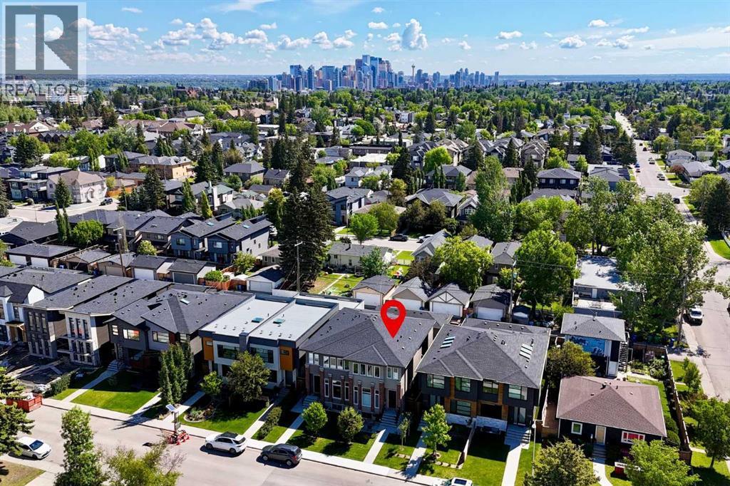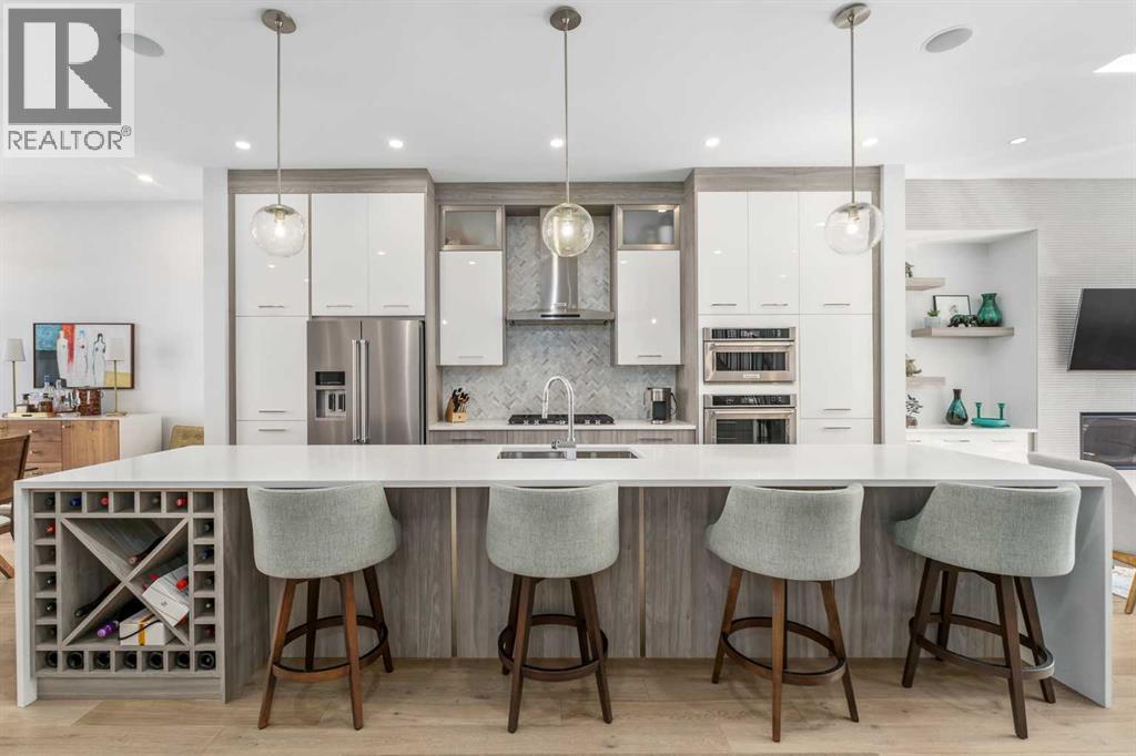 Not all infills are created equal. This modern Killarney residence stands apart with craftsmanship you can see—and construction you can feel. Bathed in natural light through oversized windows and framed by 10’ main-floor ceilings, the home balances warm engineered hardwood with a refined, contemporary palette. From the moment you step inside, the fit and finish telegraph quality: crisp lines, precise millwork, and a floor plan that moves effortlessly from everyday living to elegant entertaining. At the front, a formal dining room sets the tone—three large picture windows, a statement light fixture, and room for those long, lively dinners. The heart of the home is an oversized chef’s kitchen that’s both beautiful and hard-working: white and warm wood-grain cabinetry to the bulkhead, gleaming waterfall quartz counters, built-in wall oven, a gas cooktop beneath a sleek stand-alone hood fan, and a Carrara marble herringbone backsplash that wraps the hood for a bespoke, designer finish. The generous island invites coffee catch-ups and weekend prep, while the full upgraded stainless appliance package delivers performance worthy of the space. Anchored by a tiled gas fireplace with custom open shelving, the living room is scaled for comfort and conversation. It flows naturally to the backyard for easy summer living—low maintenance landscaping with concrete walkways, a large patio, and BBQ gas hookup so hosting is as simple as turning a knob. Upstairs, the private retreat continues the theme of understated luxury. The primary suite features a tray ceiling, high end blinds, and a walk-in closet fit with custom built-ins. The spa-calibre 5-piece ensuite pampers with a freestanding soaker tub, an oversized glass shower, 24"×24" tile, in-floor heat, and a steam rough-in already planned into the layout. Two additional bedroom suites are thoughtfully finished—each with true walk-in closets and custom storage (one with a stylish wallpaper feature wall). A proper laundry room—comple te with cabinetry, folding counter, and sink—keeps the day-to-day running smoothly. The fully finished basement is made for movie nights and game days. A large rec/media area includes a custom wet bar with sink, wood-grain and white cabinetry, marble tile backsplash, and a wine fridge—an entertainer’s ally. Berber carpet adds warmth underfoot, while in-floor heating keeps the entire level comfortable year-round. A sleek 3-piece bathroom with a floating vanity serves guests with style. And because true quality goes beyond finishes, this level was engineered with approximately six inches of insulation beneath the slab for superior efficiency and comfort. Set on a quiet inner-city street in the heart of Killarney—close to parks, schools, transit, and the best of local cafés and amenities—this home delivers the rare combination of design, durability, and day-to-day livability. If you value details you can feel as much as finishes you can see, you’ll know: this is the one. Not all infills are created equal! (id:6769)